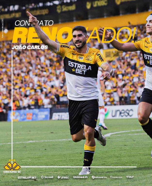 O Criciúma confirmou neste sábado (20/12) as renovações do atacante João Carlos e do goleiro Georgemy para a temporada 2026. Os atletas permanecerão no Tigre para as competições do próximo ano e estão treinando com o elenco carvoeiro na pré-temporada no Centro de Treinamento Antenor Angeloni.