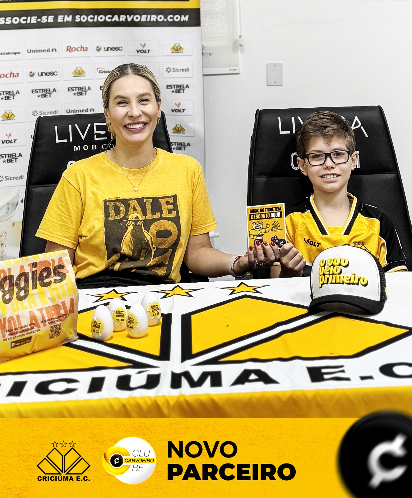 A Eggies Criciúma é a nova parceira do Clube Carvoeiro, oferecendo benefícios exclusivos para os sócios do Criciúma. A assinatura do contrato aconteceu no estádio Heriberto Hülse, contando com a presença de Viviani Olimpio, gerente comercial e de marketing do clube, e Francibele, representante da Eggies Criciúma.