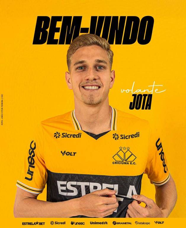 O Criciúma confirmou neste domingo (24/08) a chegada do seu novo volante para a temporada 2025. Jota chega de empréstimo do Bahia e é a nova peça do sistema defensivo do técnico Eduardo Baptista para a disputa da Série B do Brasileiro. O atleta já está com o nome registrado no Boletim Informativo Diário (BID) da Confederação Brasileira de Futebol (CBF).