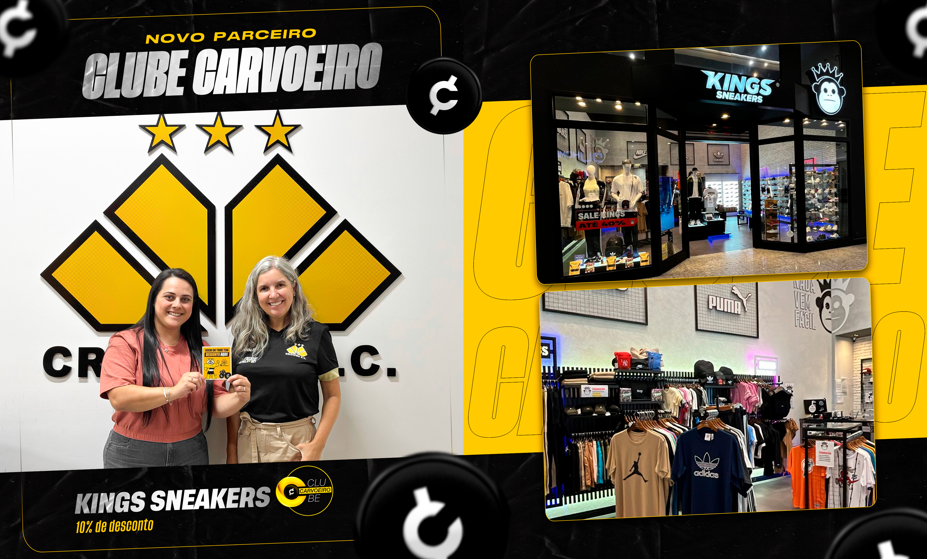 A Kings Sneakers é a nova parceira do Clube Carvoeiro, oferecendo benefícios exclusivos para os sócios do Criciúma. A assinatura do contrato aconteceu no estádio Heriberto Hülse, contando com a presença de Viviani Olimpio, gerente comercial e de marketing do clube, e Bruna Rodrigues Nardi, gerente representante da Kings Sneakers.
