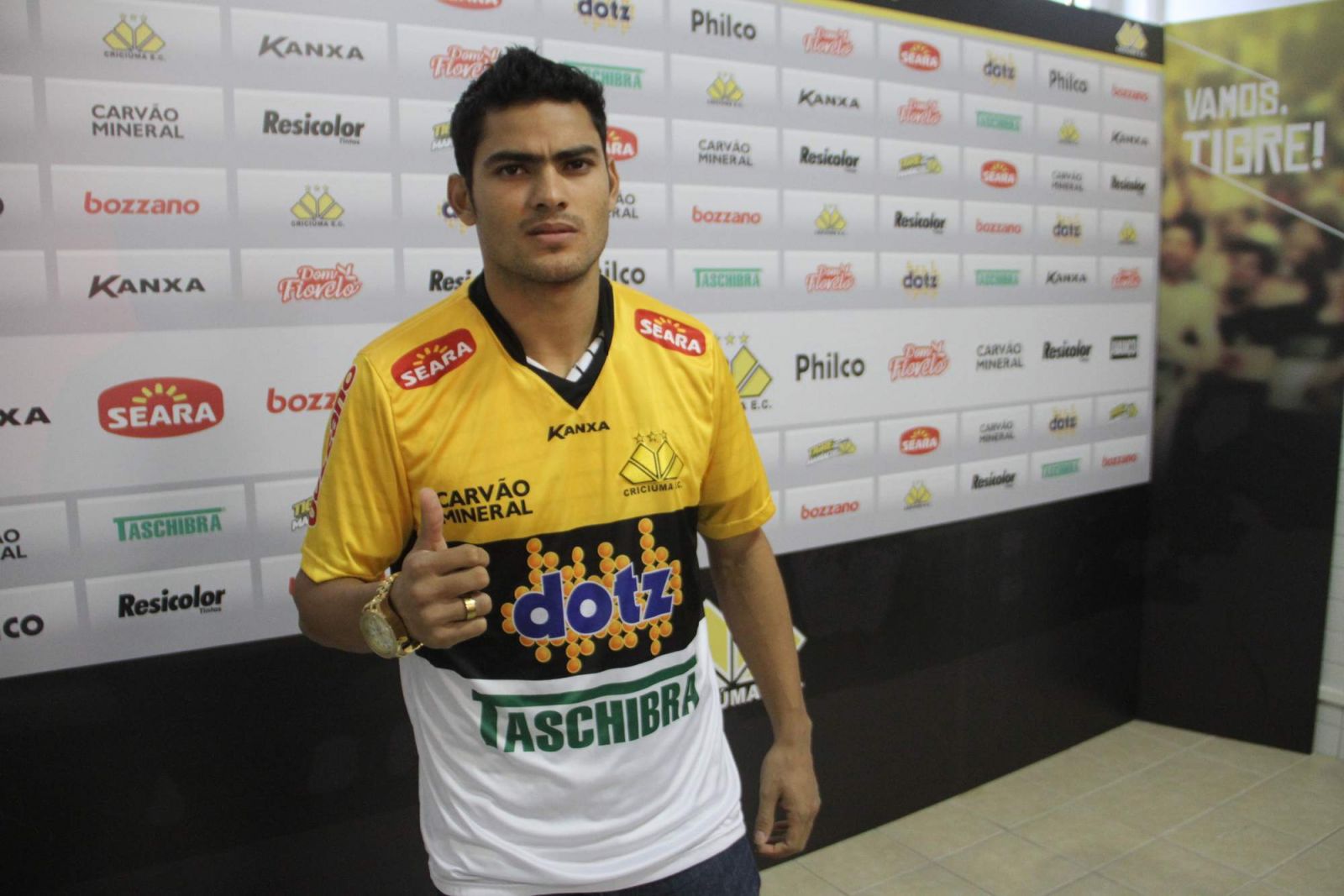 O lateral direito Tony foi apresentado na manhã desta sexta-feira (07/06), na Sala de Imprensa Clésio Búrigo, no estádio Heriberto Hülse. O jogador é mais um dos reforços que chegam ao Tigre para a sequência do Campeonato Brasileiro da Série A. Tony estava no Grêmio e chegou a jogar no Campeonato Gaúcho de 2013.