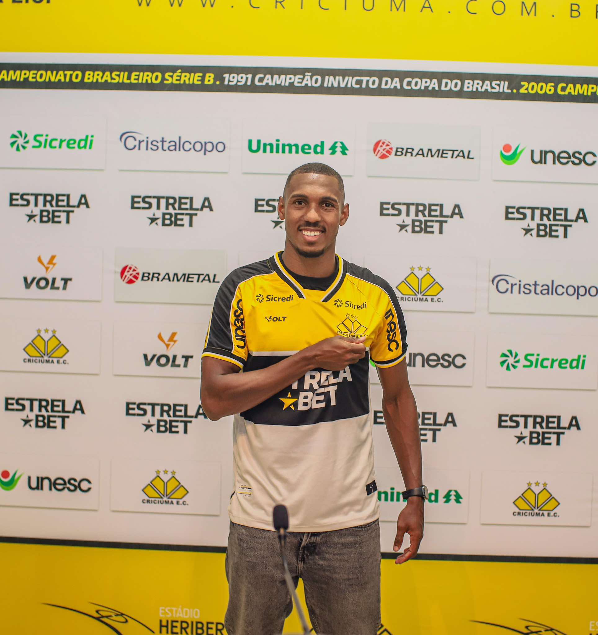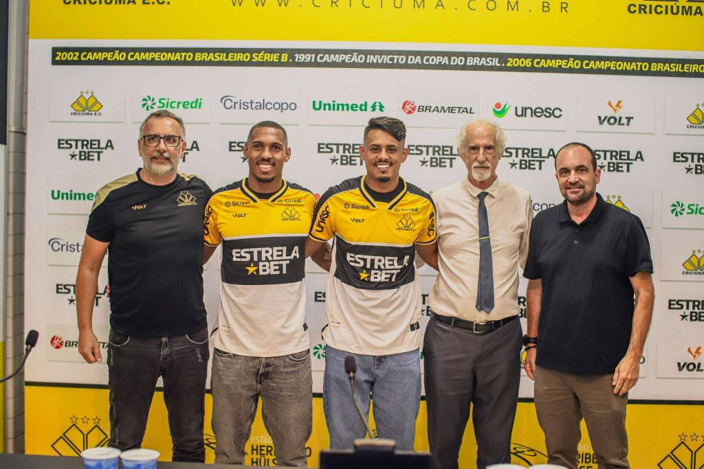 O Criciúma apresentou de forma oficial na tarde desta sexta-feira (17/01) mais duas novidades para a temporada 2025. O lateral-direito Léo Alaba, que vem de empréstimo do AFS Futebol SAD, de Portugal, e o meia-atacante Gabriel Barros, emprestado do Internacional, vestiram a camisa tricolor na Sala de Imprensa Clésio Búrigo, no estádio Heriberto Hülse. A entrevista coletiva foi transmitida ao vivo na TV Tigre, o canal oficial do clube no YouTube.