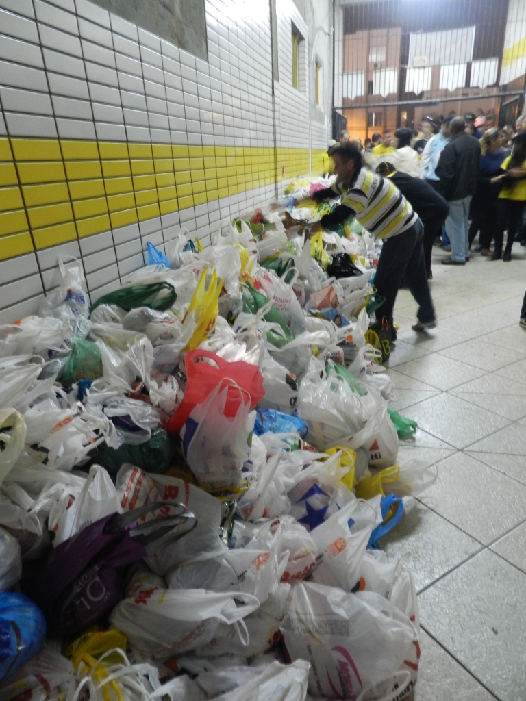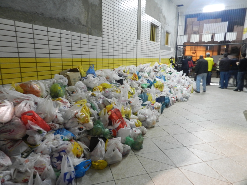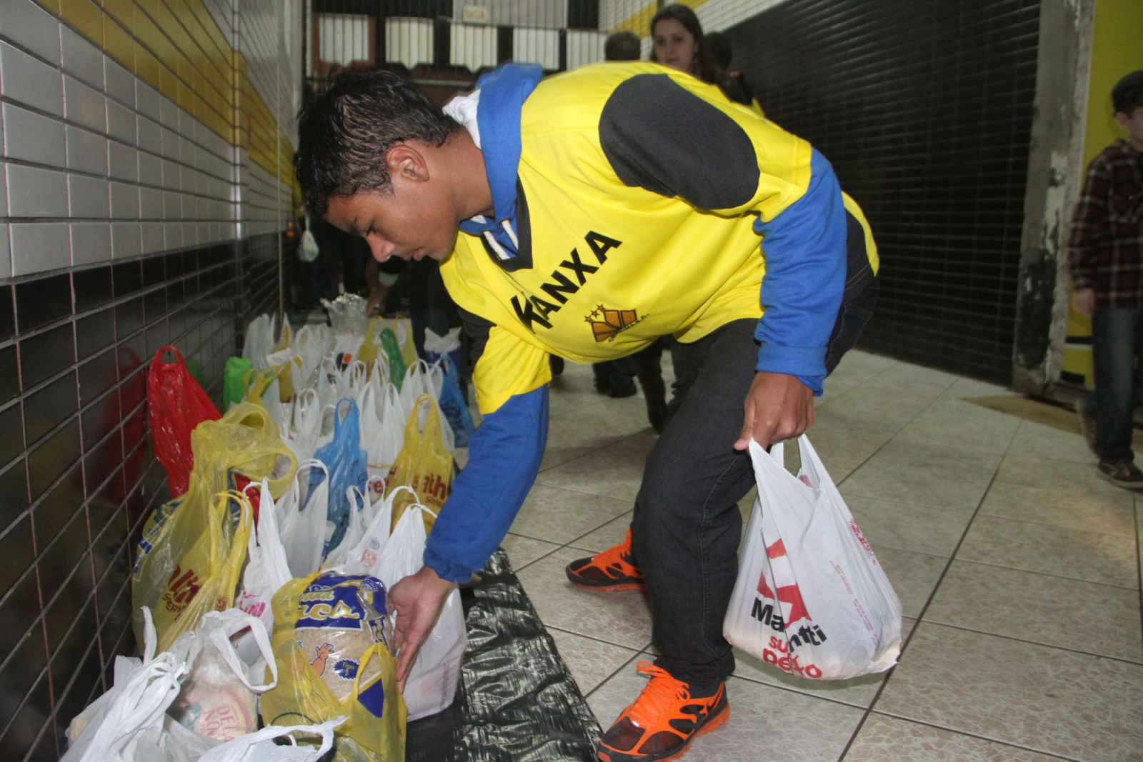 Voluntários ajudaram na arrecadação dos alimentos. Foto: Lucas Jorge/criciumaec.com.br