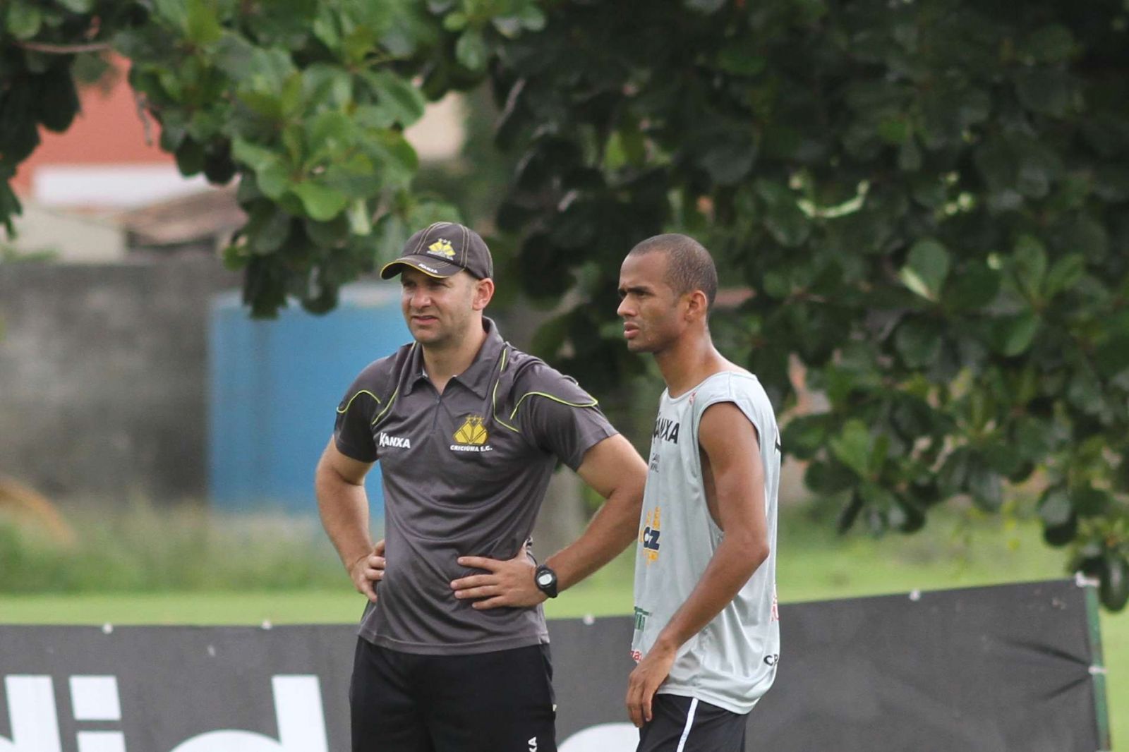 Fisiologista Cleber Medeiros e lateral Sueliton. Foto: Fernando Ribeiro/criciumaec.com.br
