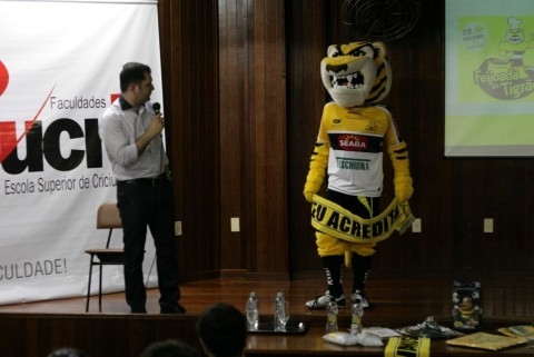 O auditório da Faculdade estava lotado para conhecer as peças publicitárias, os vídeos e também os eventos promovidos pelo departamento de marketing. O mascote oficial do clube, o Tigrão, compareceu a palestra e ao final tirou fotos com diversos alunos.