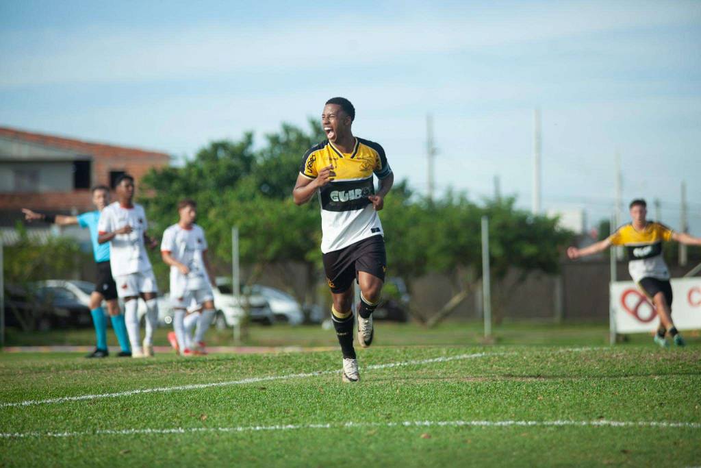 Hiago comemora o gol da vitória no CT Antenor Angeloni. Foto: Cleiton Ramos