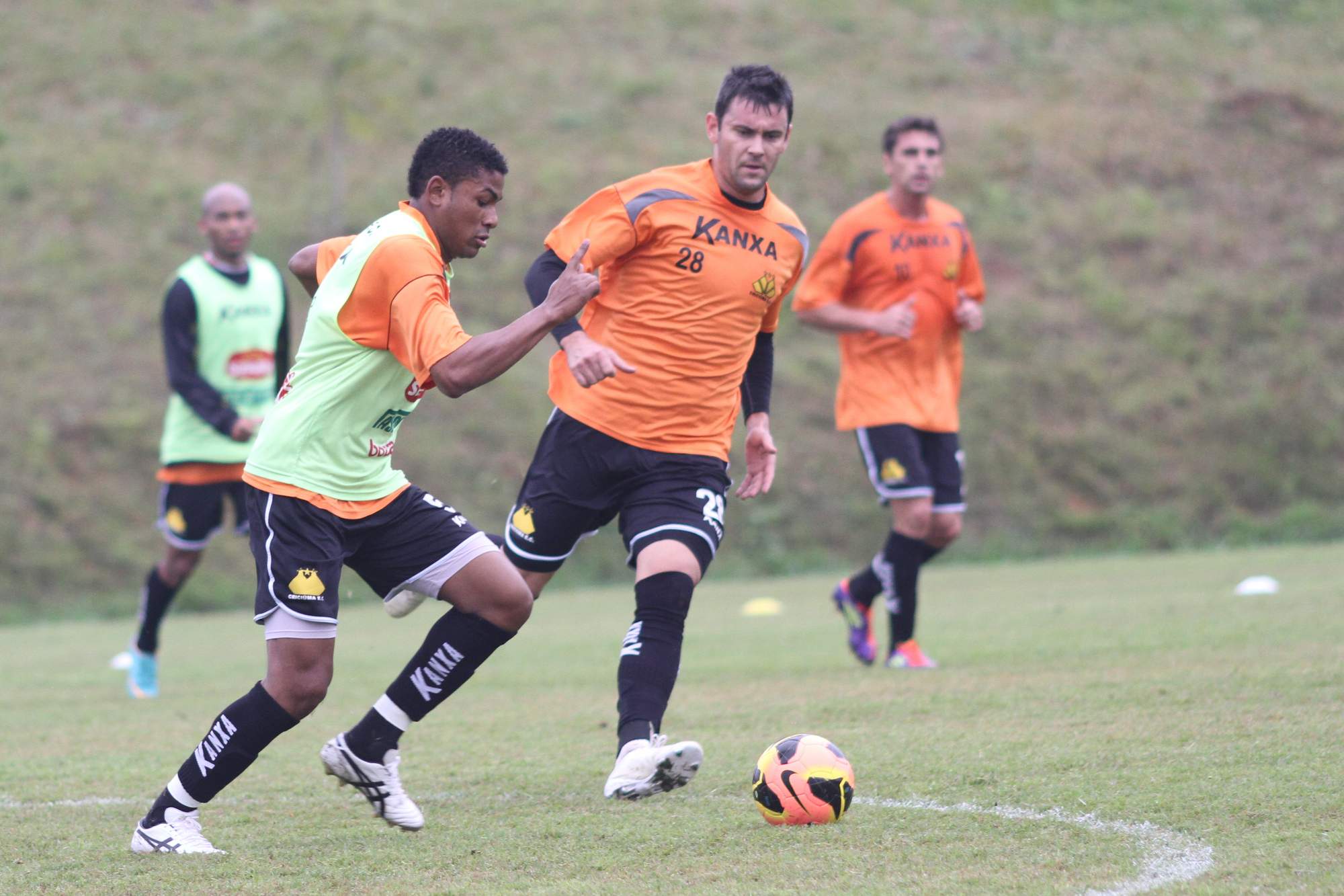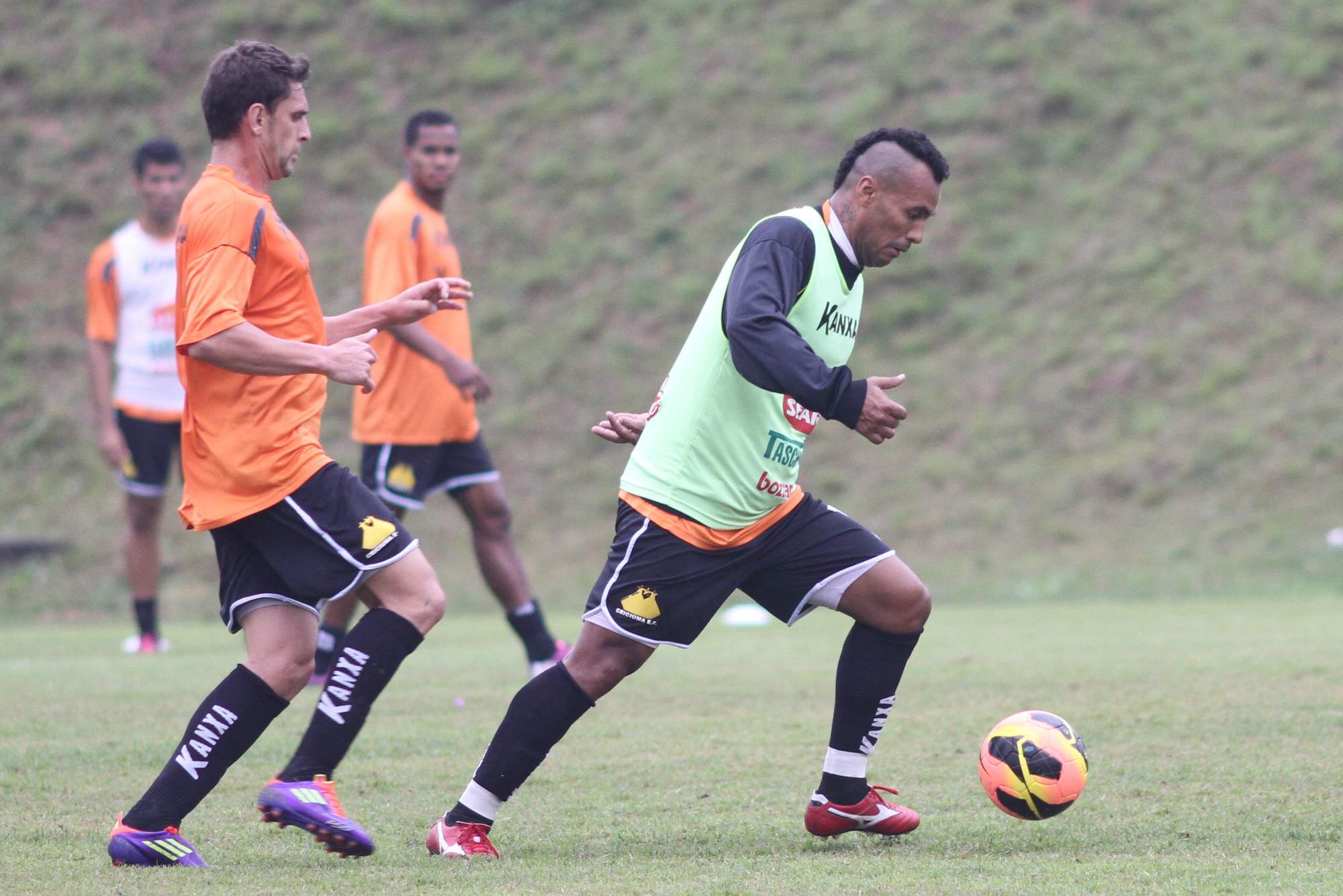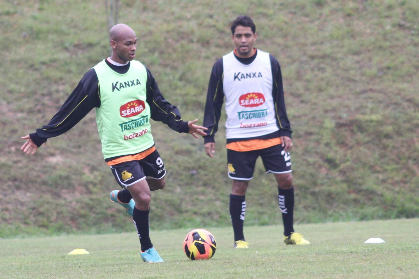 Tartá e Brasília em treino no CT nesta segunda. Foto: Fernando Ribeiro/Criciúma E. C.