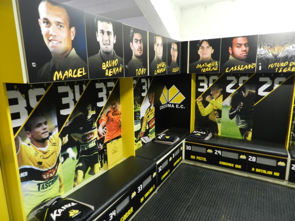 Os jogadores da equipe profissional do Tigre tiveram uma surpresa ao chegar de viagem nesta quinta-feira (01/08). O vestiário do time do Criciúma foi todo personalizado para cada jogador. Cada armário foi customizado com a foto de cada jogador e uma parte de uma frase de incentivo para os jogadores do Tricolor.