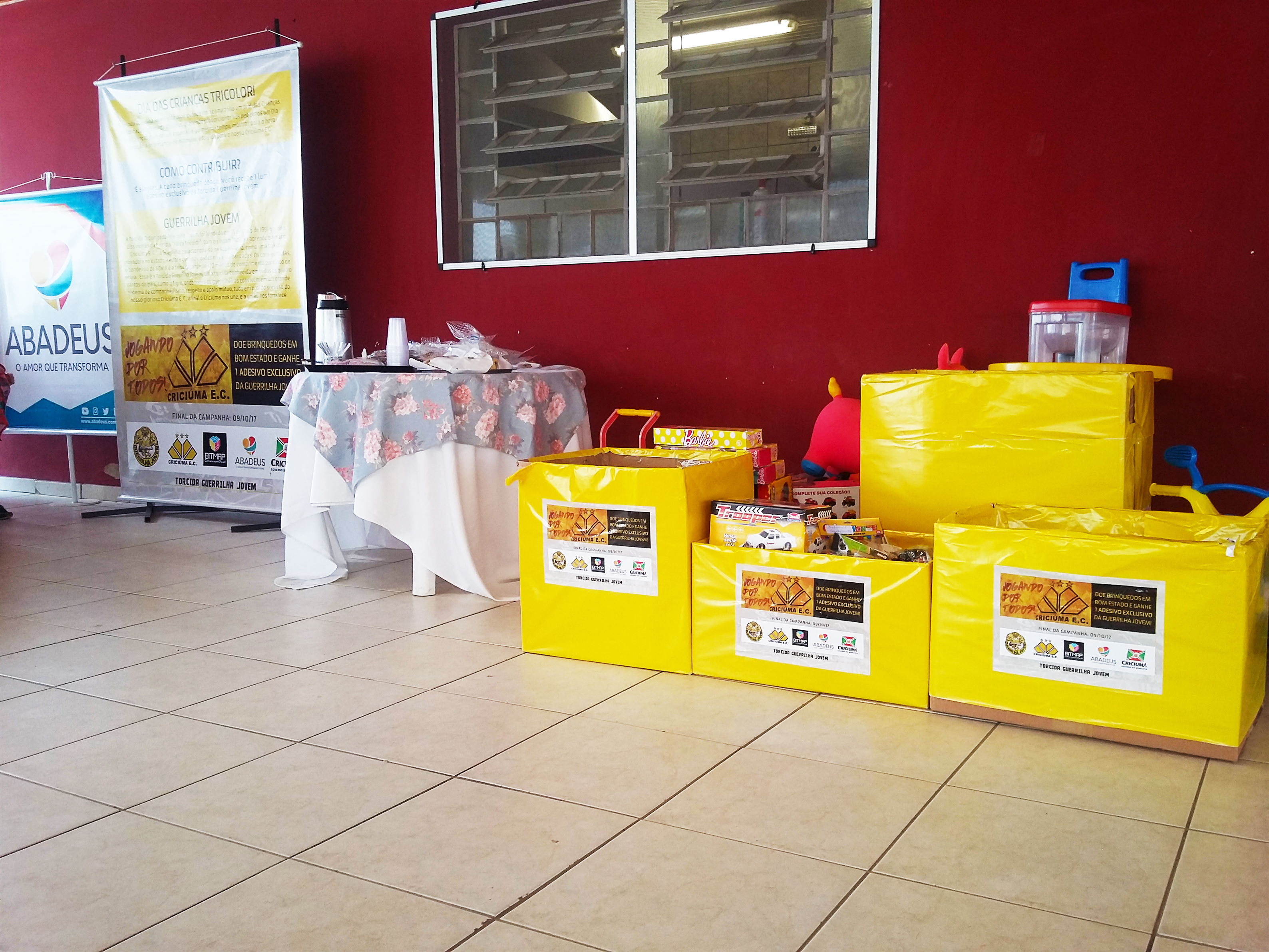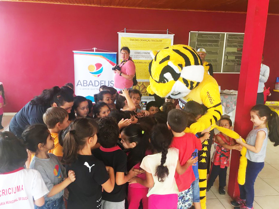 A emoção tomou conta da Associação Beneficente Abadeus na tarde desta terça-feira (10/10). Em uma ação promovida pela Guerrilha Jovem foram doados brinquedos para as crianças da instituição, que fica localizada no bairro Cristo Redentor. O goleiro Vinicius e os atacantes Andrew e Caio Rangel visitaram a instituição.