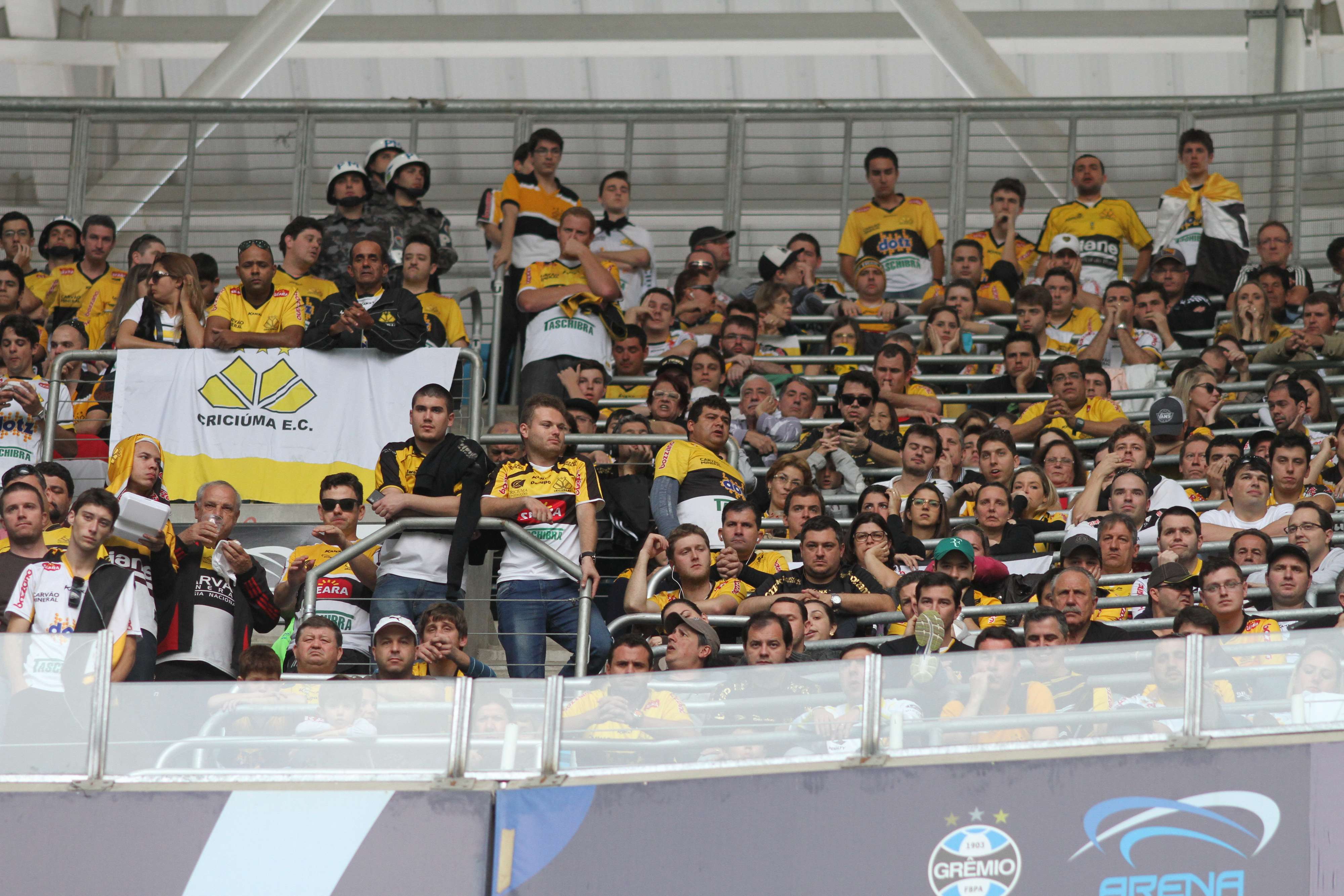O Criciúma lutou muito durante todo o jogo contra o Grêmio na tarde deste domingo (17/08). O placar final foi de 2 a 0 para a equipe gremista. Apesar das dificuldades durante o duelo, a torcida criciumense compareceu em ótimo número. Mais de 2 mil torcedores carvoeiros vieram a Porto Alegre para apoiar o Tigre. O público total da Arena foi de pouco mais de 28 mil pessoas.