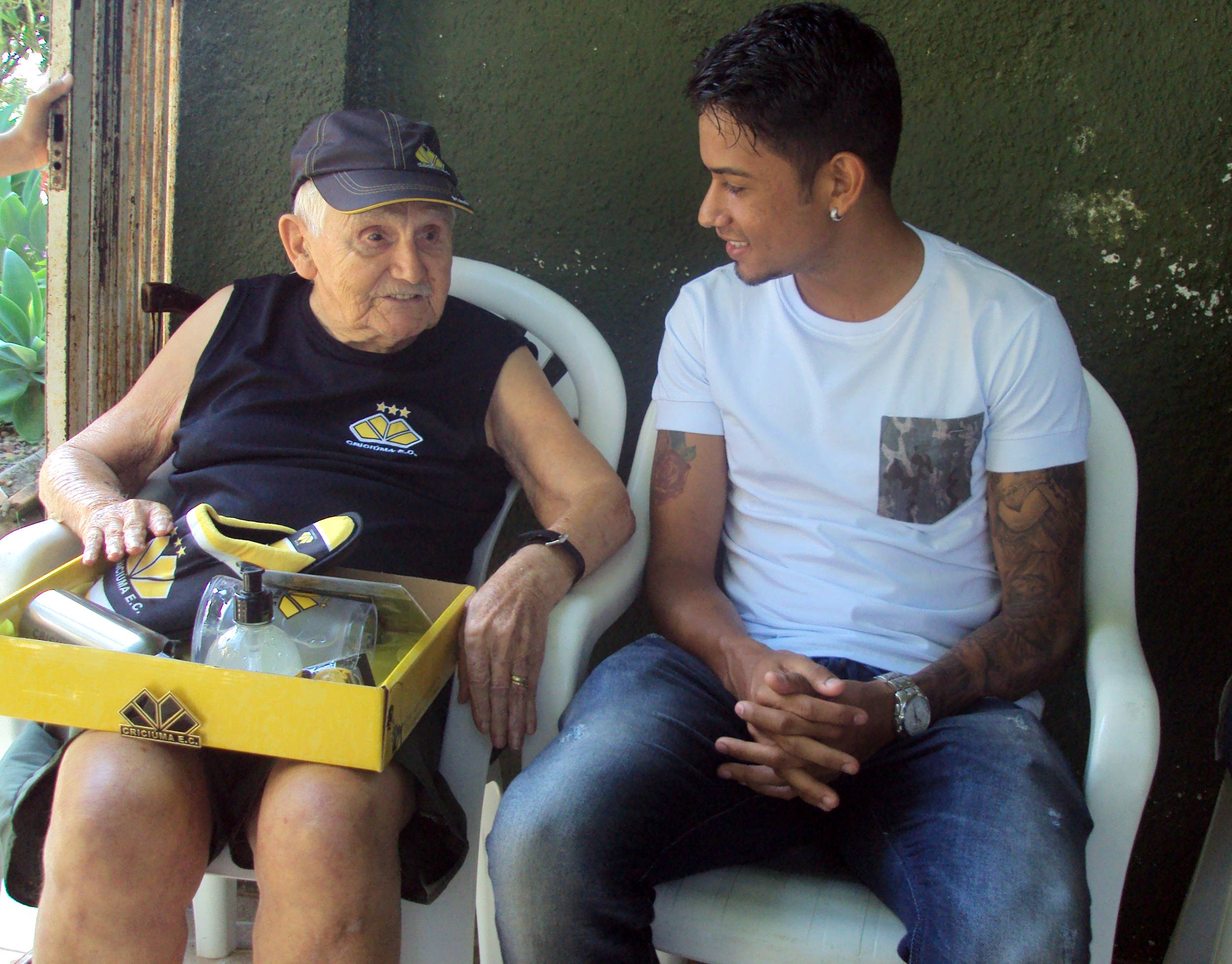 A manhã desta terça-feira (03/02) foi diferente na casa de Newton Souza Ávila, 95 anos. Torcedor fanático do Criciúma, ele recebeu a visita do atacante Lucca. O aposentado mora no bairro Comerciário, próximo ao estádio Heriberto Hülse, e ficou muito feliz com a surpresa.