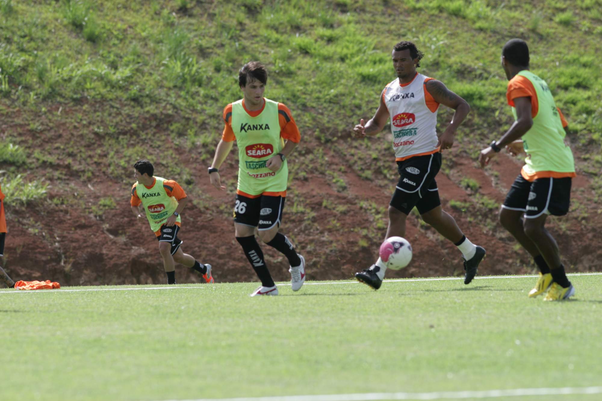 Legenda: Grupo de jogadores participaram na tarde desta quinta-feira (10/01) de treino no Centro de Treinamento. Na foto, o meia Tartá