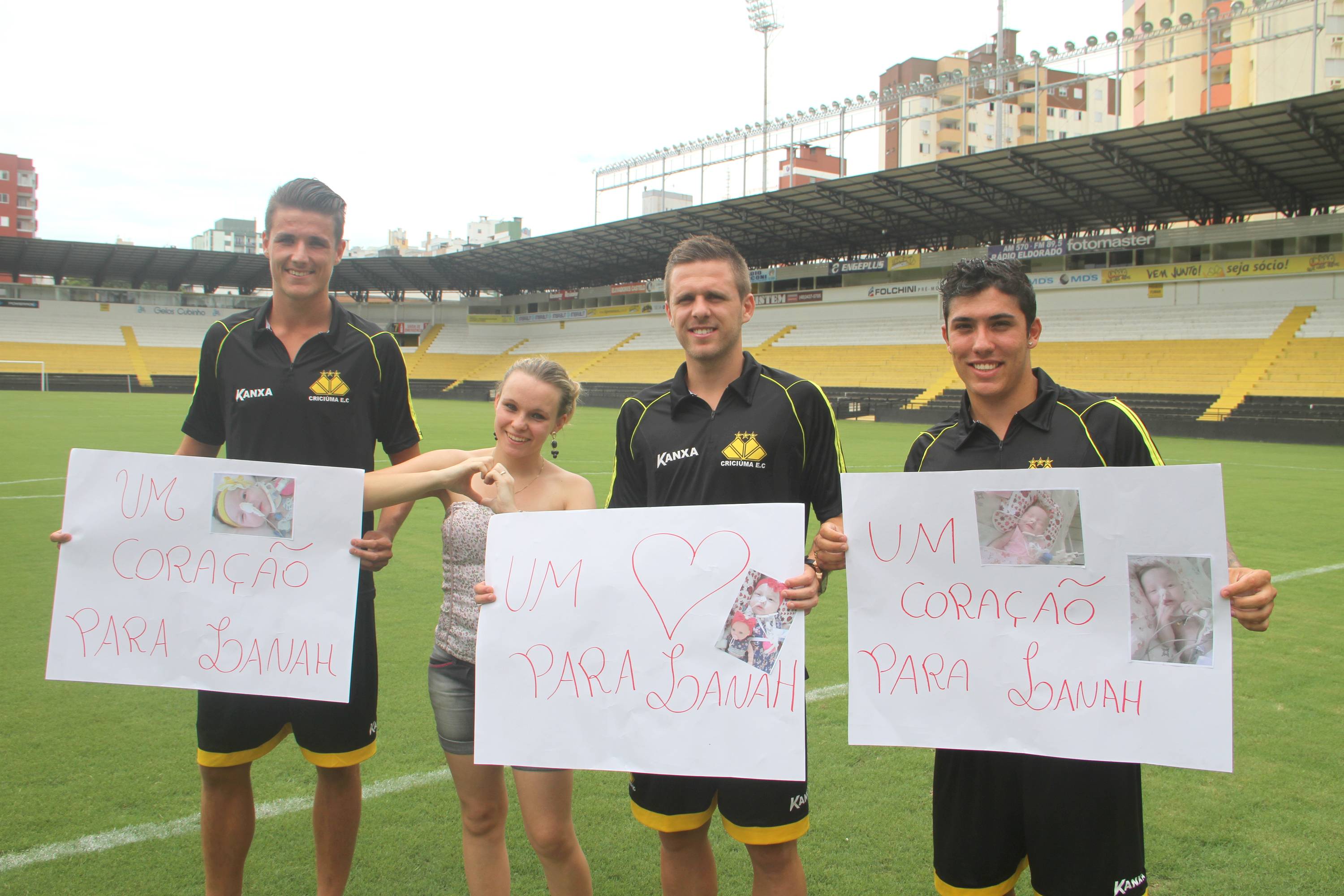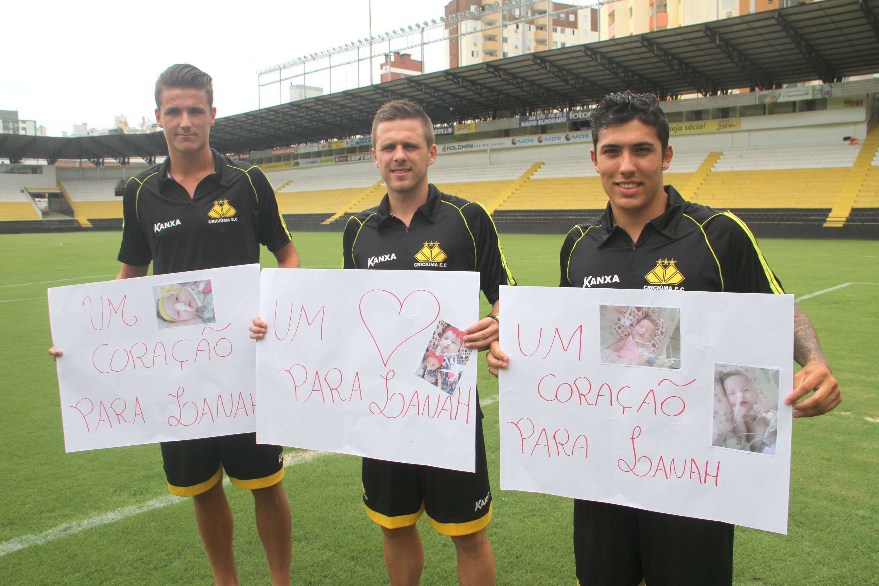 “Estamos aqui para ajudar na campanha e vamos rezar e torcer para dar tudo certo”, afirma o lateral direito Ezequiel. “É sempre bom ajudar. Procuramos ajudar para a Lanah conseguir achar um coração para ela”, destaca o atacante Bruno Lopes. O zagueiro Iago Maidana ressalta que é importante ajudar o próximo. “Vai ser fundamental para o bebê, que com certeza vai superar essa dificuldade”, completa o jogador.
