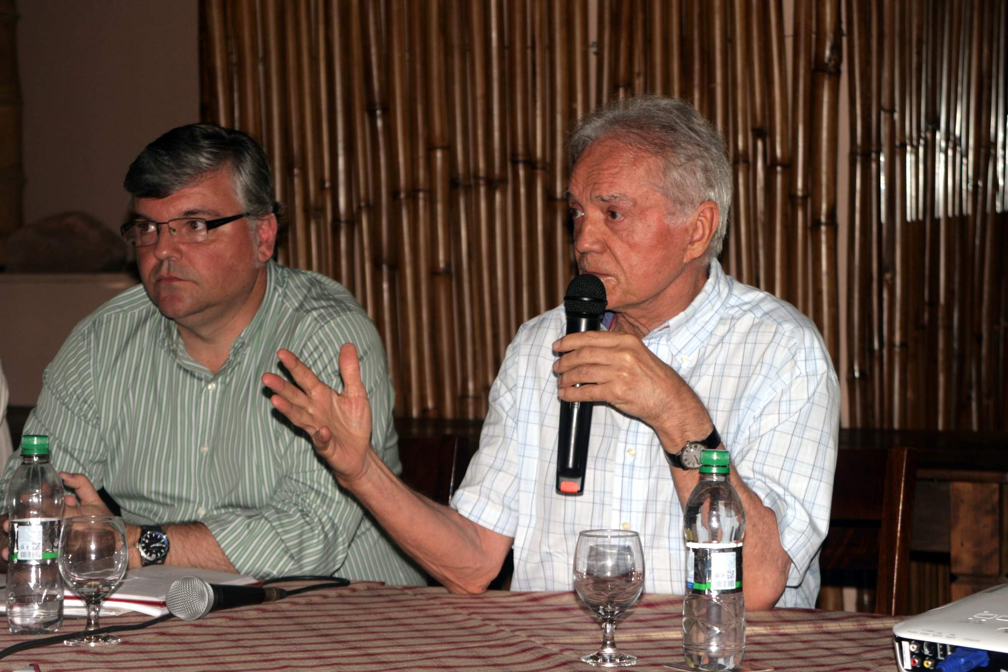 Legenda: Reunião do Conselho Deliberativo do Criciúma Esporte Clube ocorreu na noite desta quarta-feira (16/01) no Centro de Eventos Oasis. Na foto, o presidente do Conselho Deliberativo, Renato Bastos, e o o presidente Antenor Angeloni