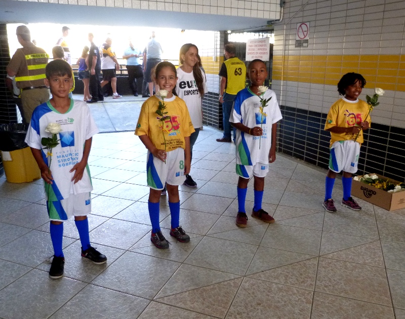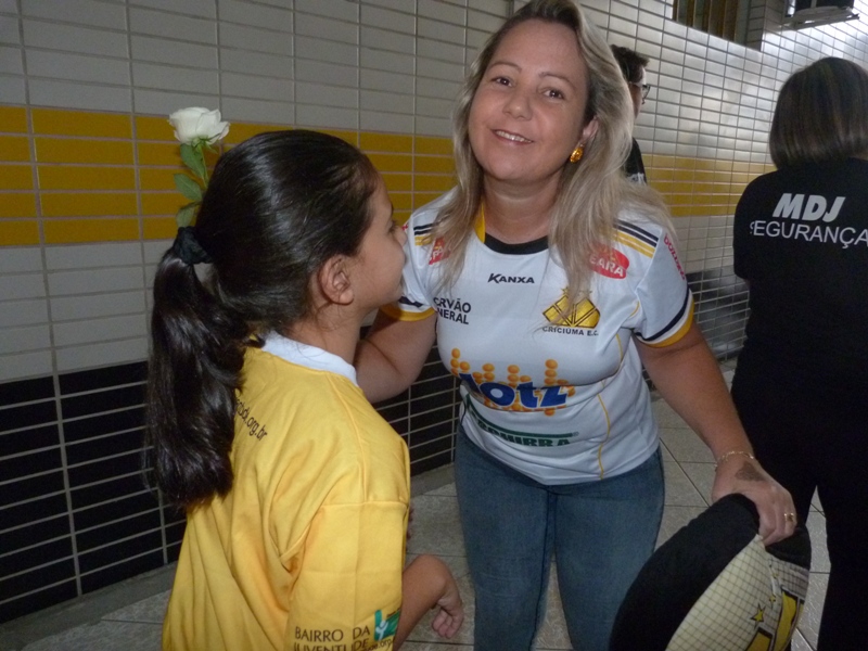 Antes da partida do Criciúma contra a Chapecoense, nesse sábado (07/03), crianças do Bairro da Juventude entregaram flores para as mulheres no estádio Heriberto Hülse. Foram distribuídas mil rosas nos portões, que dão acesso a arquibancada do Majestoso.