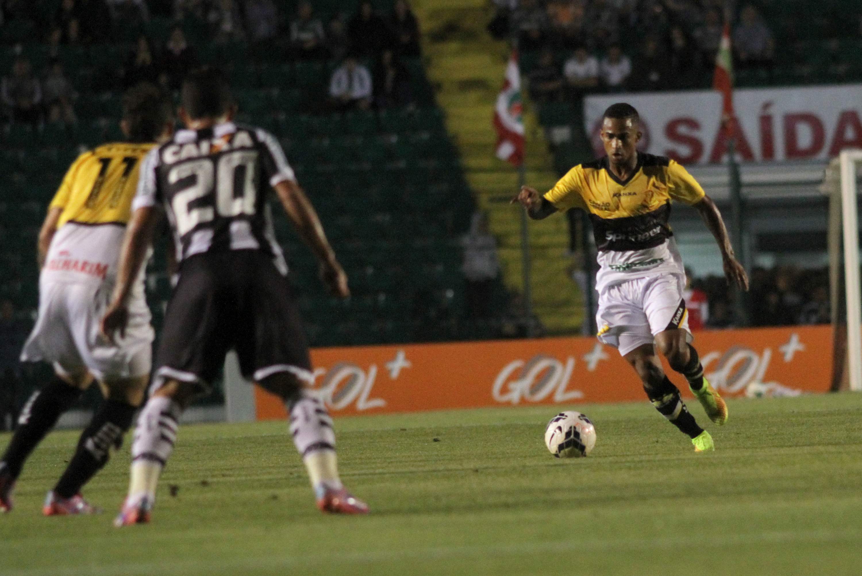 Legenda: Lance durante a partida entre Figueirense e Criciúma, realizada na noite desta quarta-feira (17/09), no estádio Orlando Scarpelli, em Florianópolis (SC)
