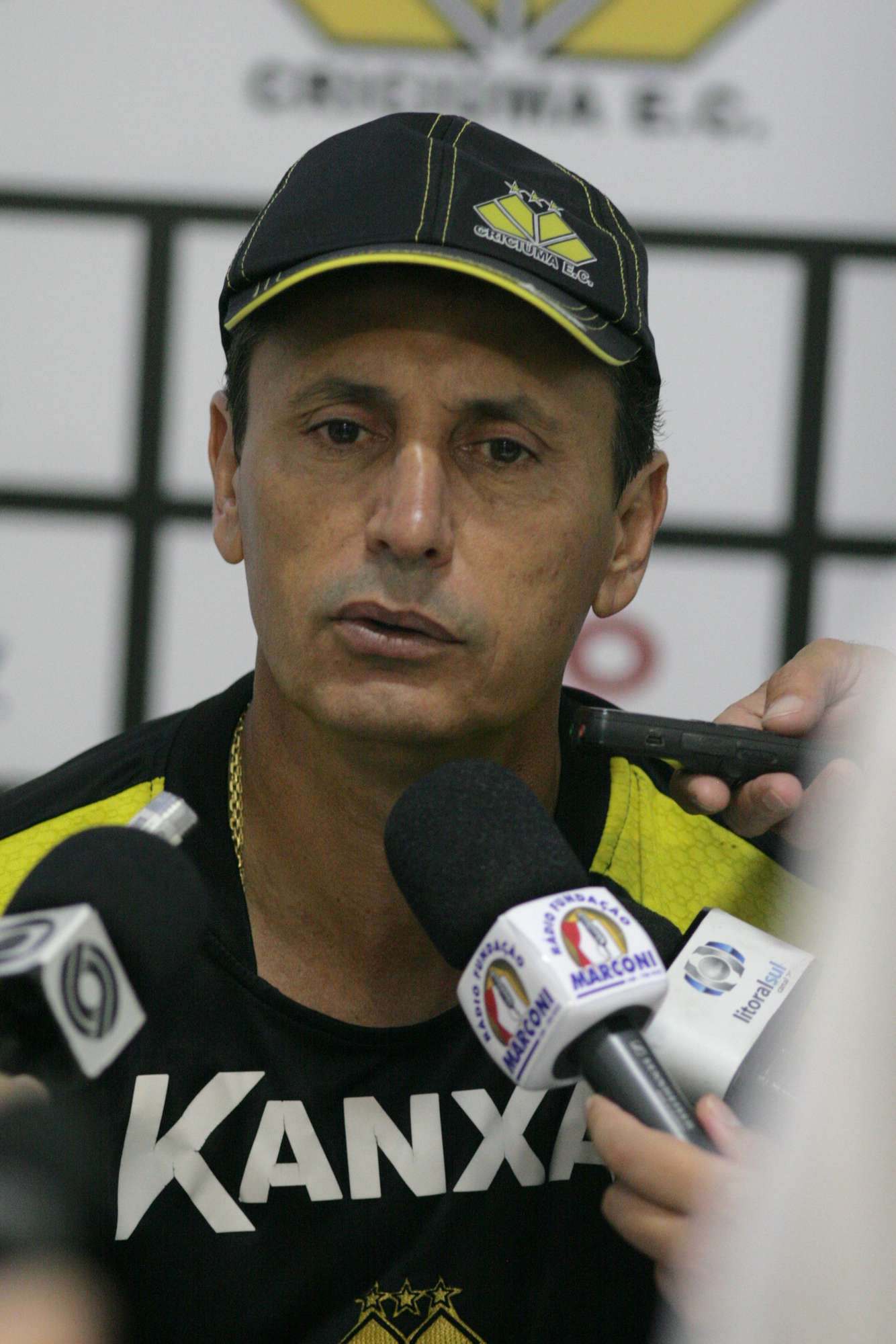 Legenda: Técnico Paulo Comelli concedeu entrevista coletiva na sala de imprensa do estádio Heriberto Hülse na manhã desta terça-feira (29/01)