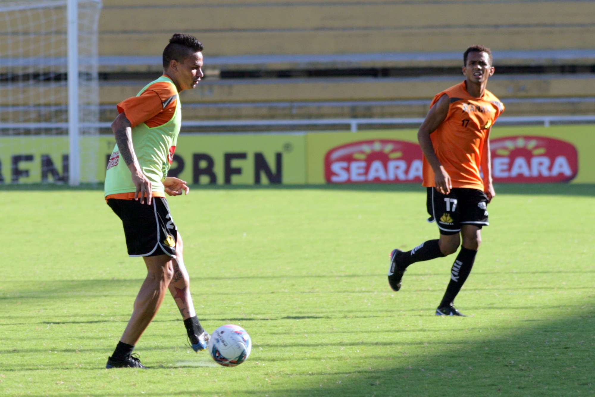 Legenda: Treino tático na manhã desta terça-feira (29/01) no estádio Heriberto Hülse. Na foto, Matheus Ferraz (E) e Ivo (D)
