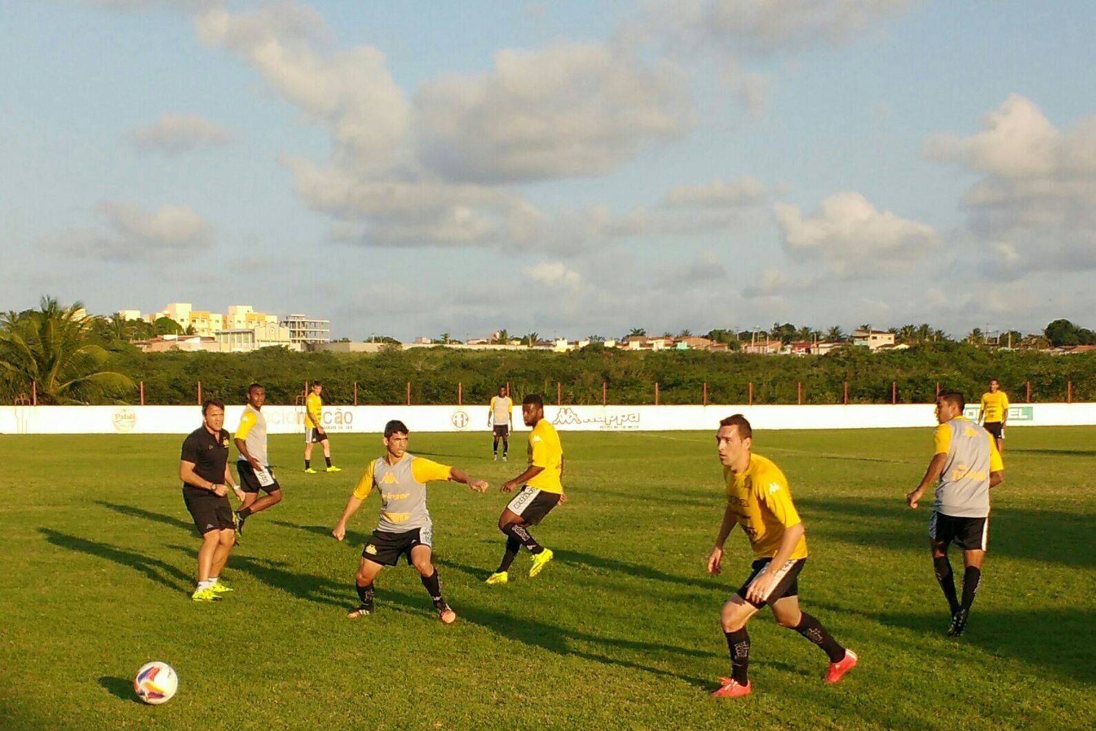 Legenda: Atletas durante o treino desta segunda-feira (24/08), no CT do América.