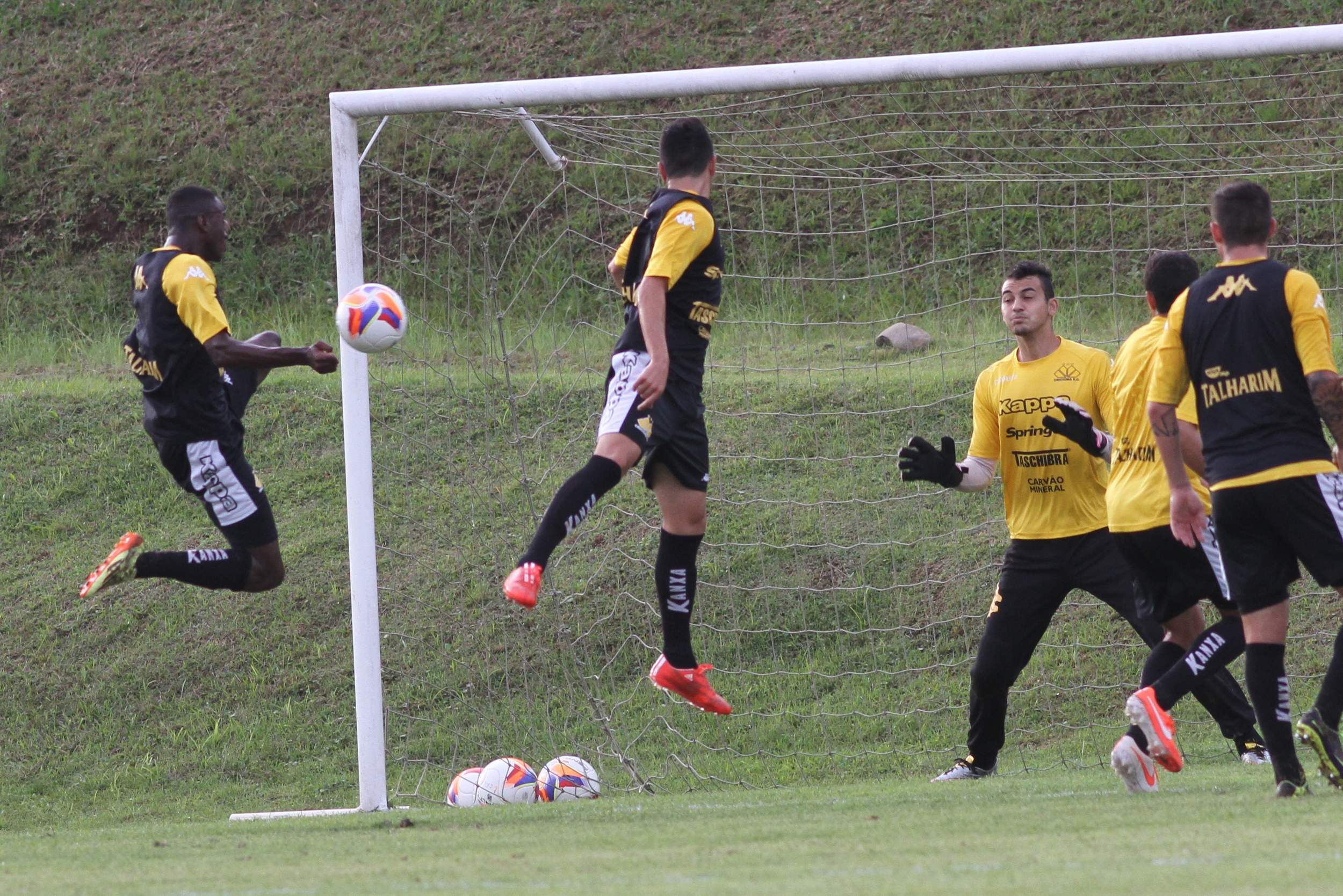 Legenda: Atletas durante treino do Criciúma na tarde desta sexta-feira (17/04) no Centro de Treinamento, no bairro Cristo Redentor