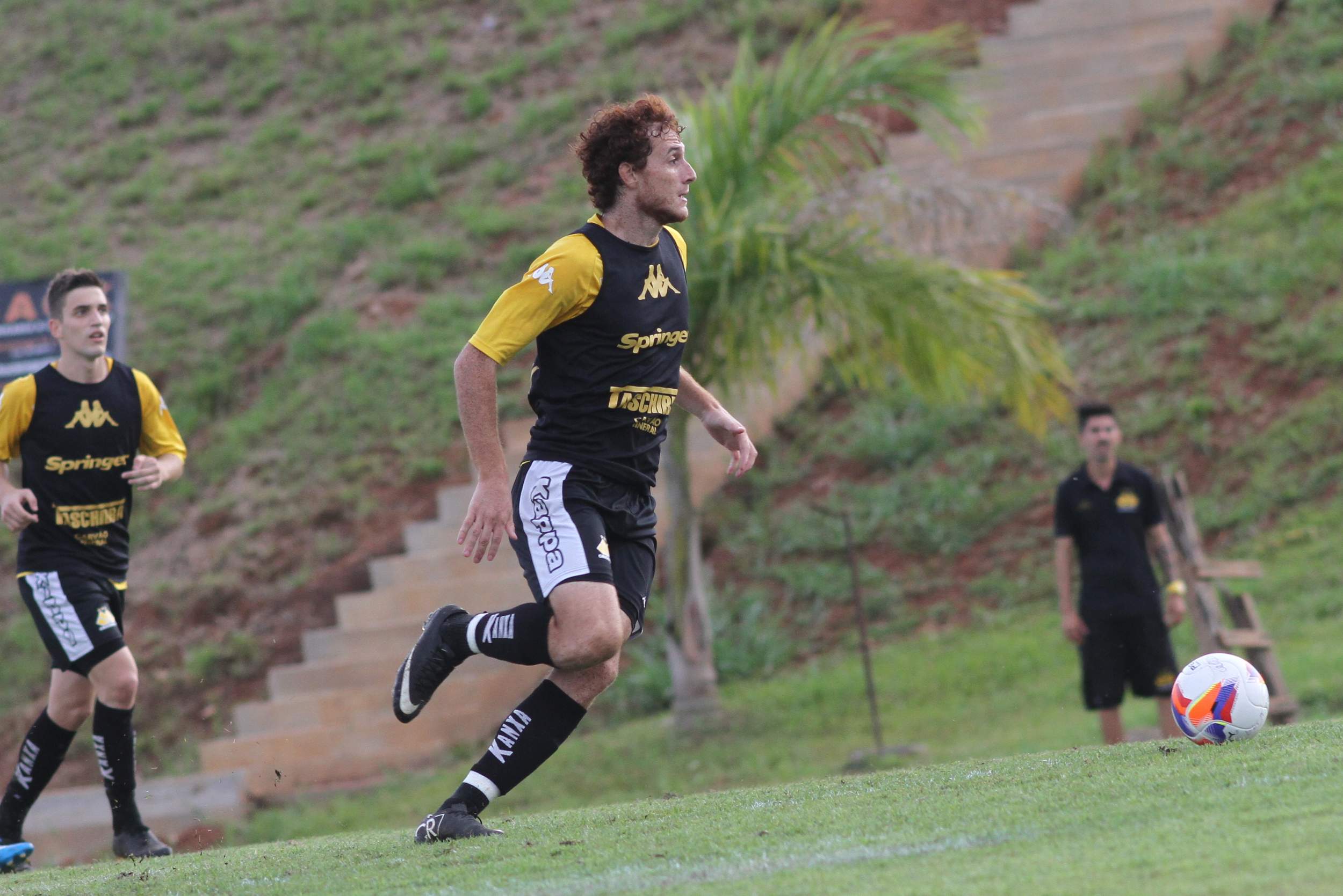 Legenda: Volante Barreto durante treino do Criciúma na tarde desta sexta-feira (17/04) no Centro de Treinamento, no bairro Cristo Redentor