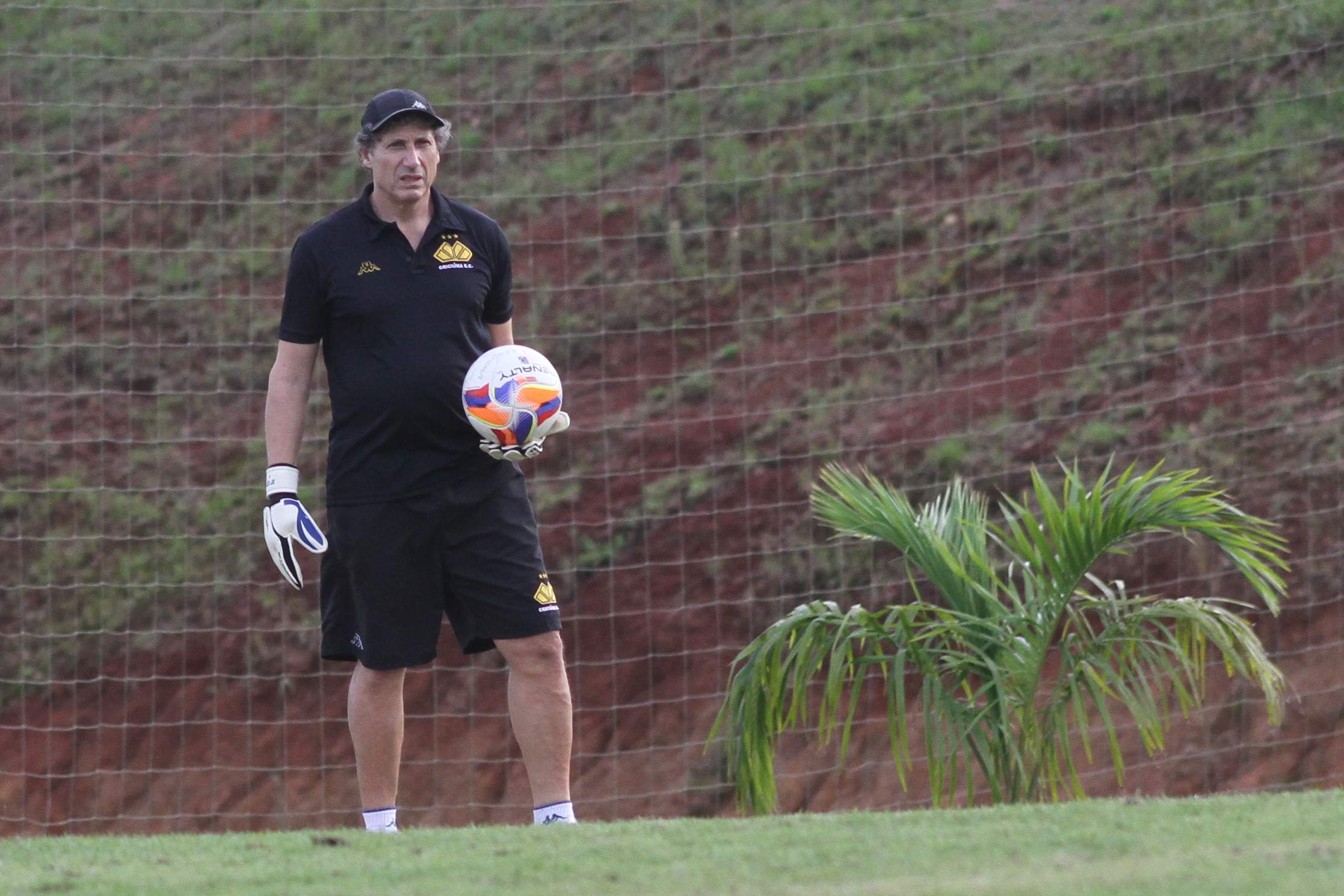 Legenda: Preparador de goleiros Antônio Carlos Pracidelli durante treino do Criciúma na tarde desta sexta-feira (17/04) no Centro de Treinamento, no bairro Cristo Redentor