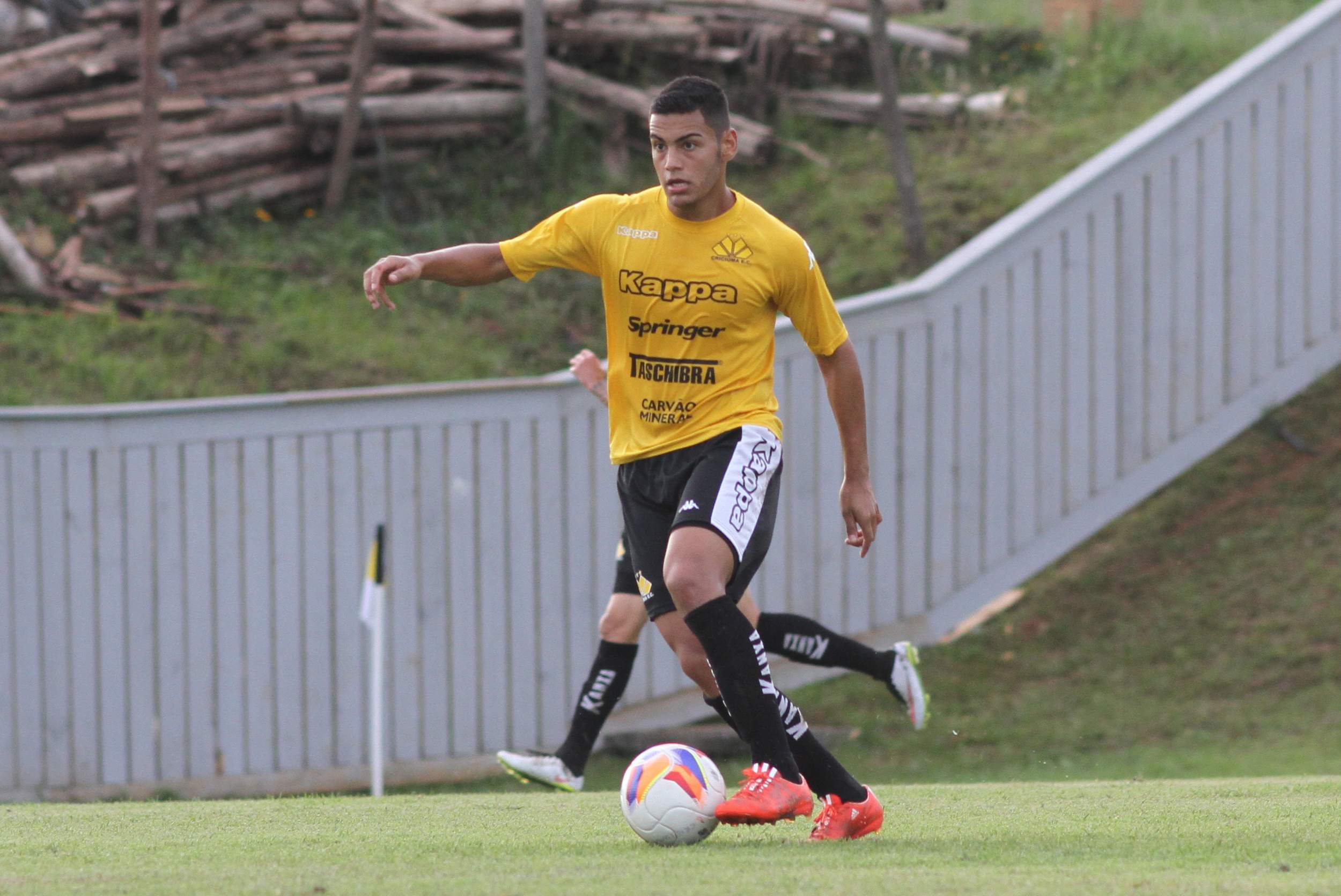 Legenda: Meia Gabriel Ceará durante treino do Criciúma na tarde desta sexta-feira (17/04) no Centro de Treinamento, no bairro Cristo Redentor