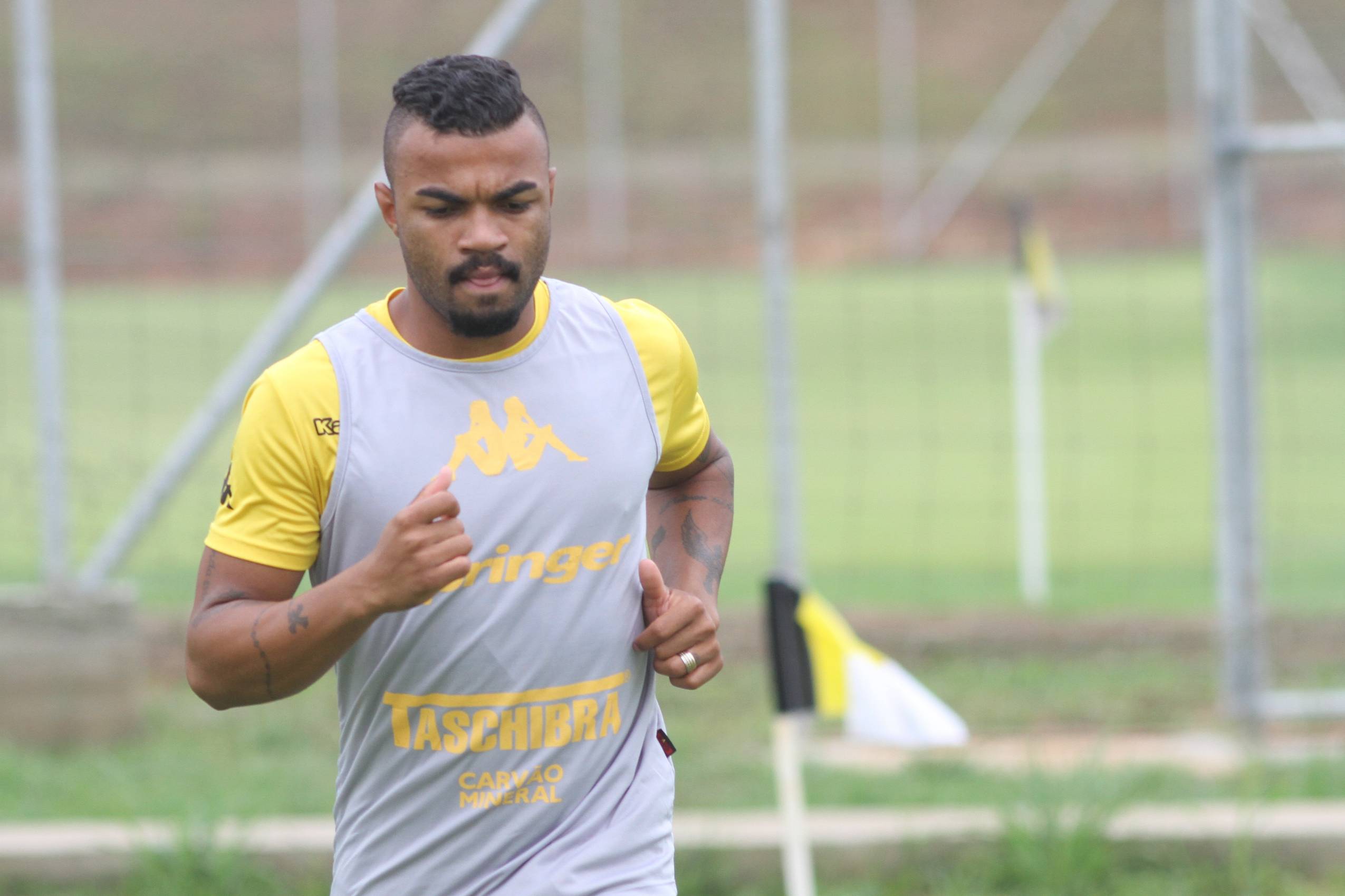 Legenda: Jefferson durante treino do Criciúma na manhã desta terça-feira (02/02), no Centro de Treinamento, no bairro Cristo Redentor