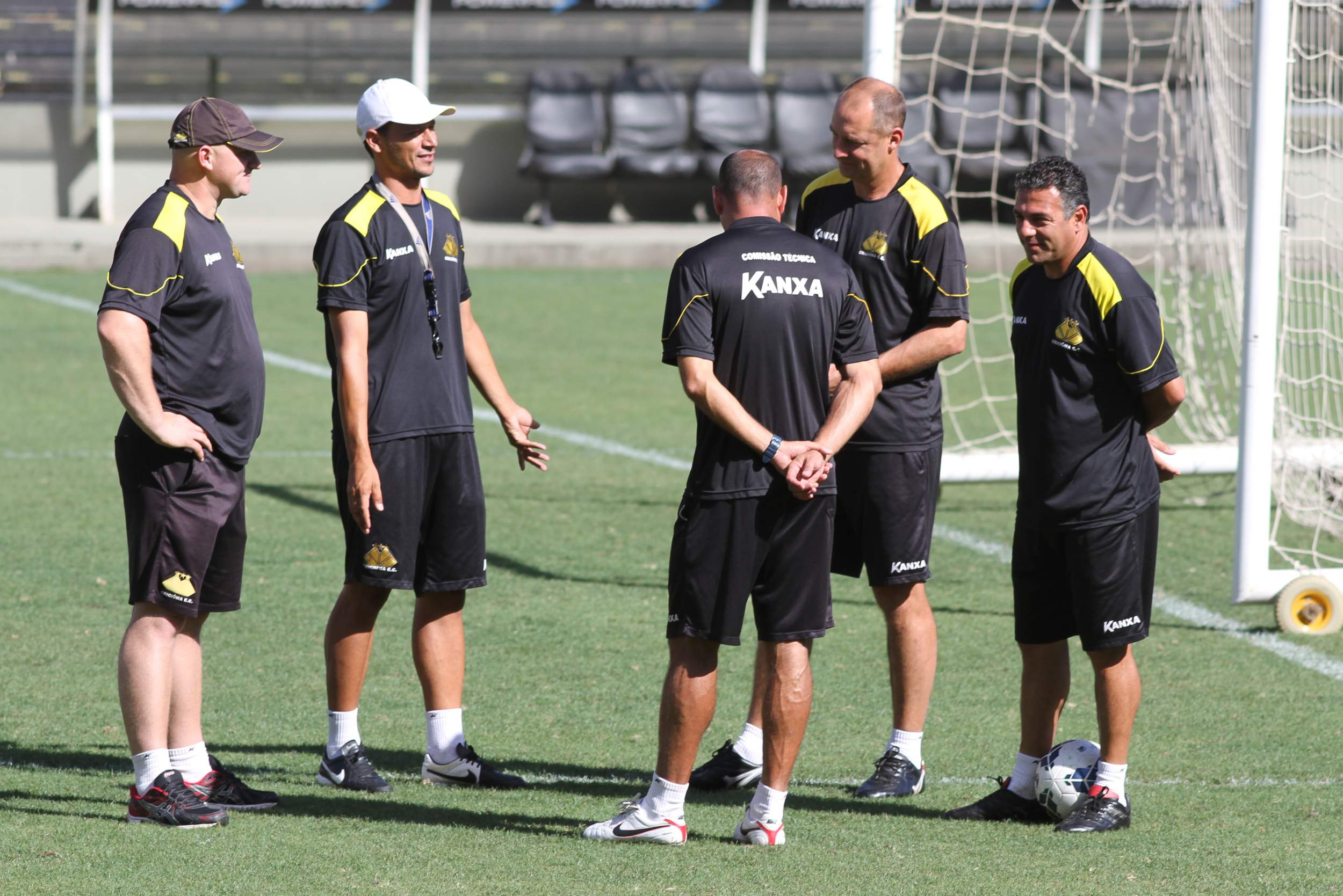 Legenda: Comissão técnica durante treino do Criciúma no estádio Heriberto Hülse na manhã desta sexta-feira (05/12)