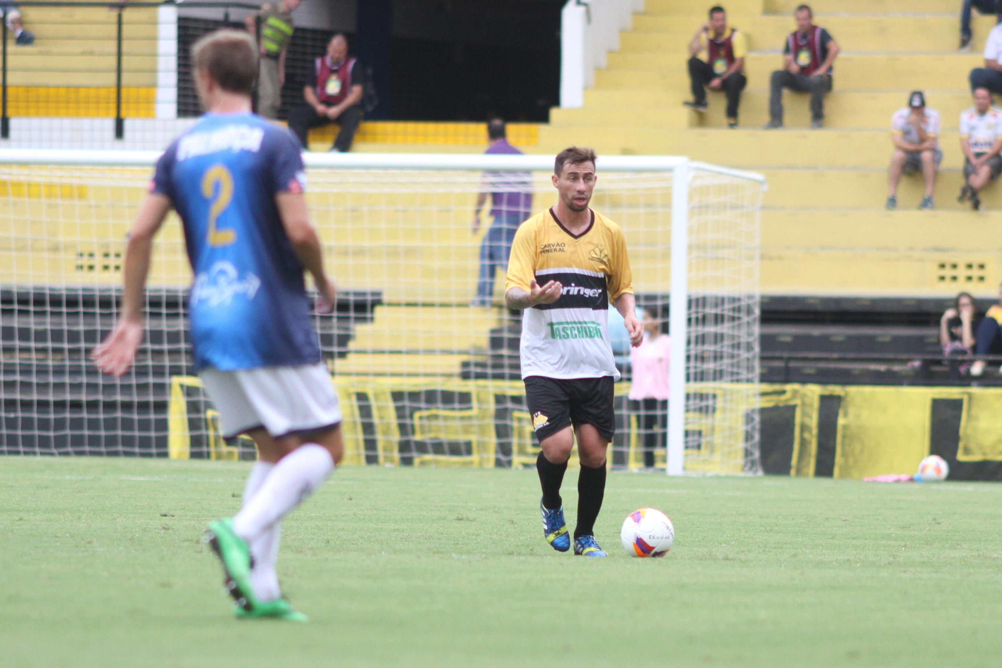 Legenda: Volante Luizinho Mello em lance durante o jogo entre Criciúma e Guarani pela primeira rodada do Campeonato Catarinense na tarde deste sábado (31/01) no estádio Heriberto Hülse