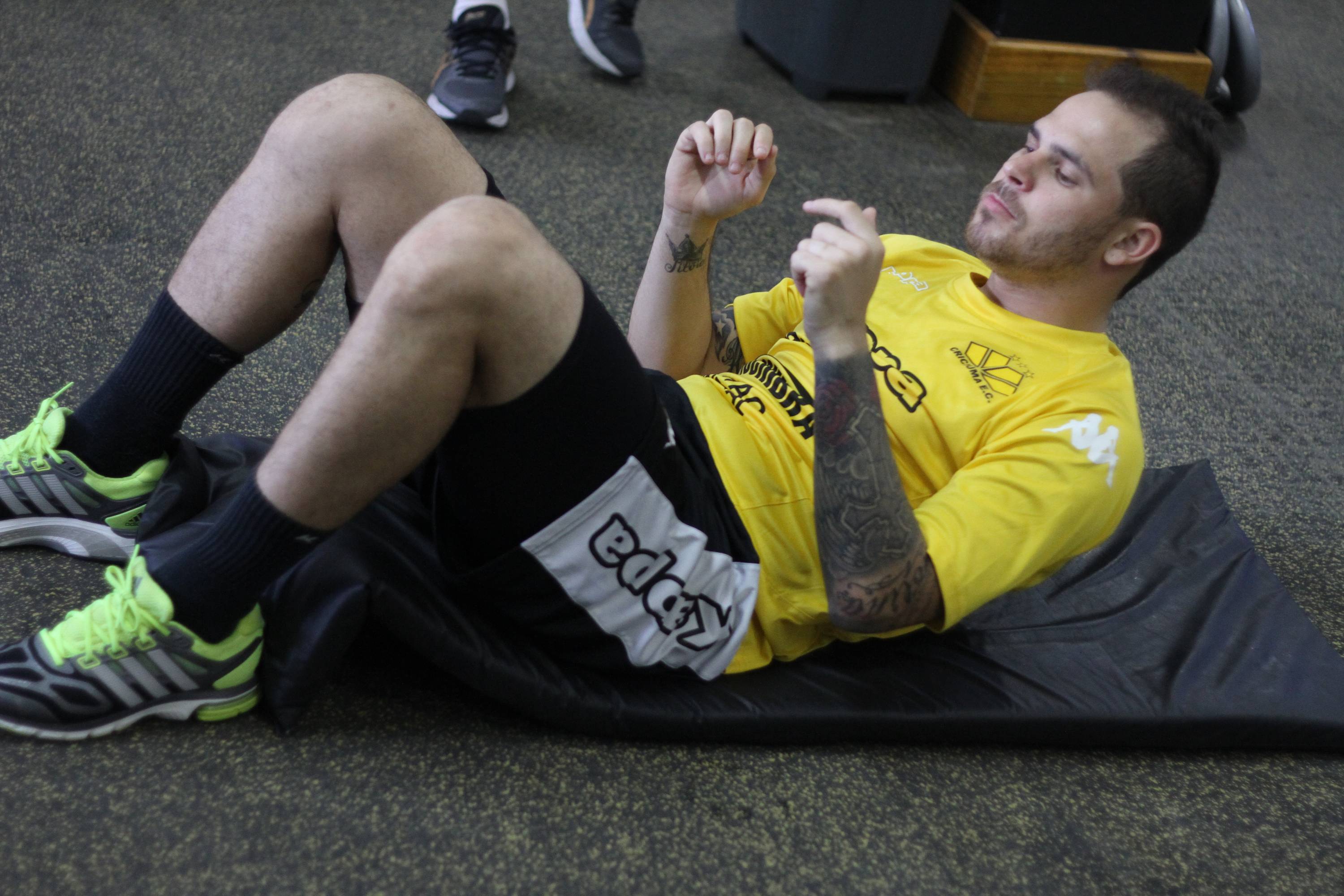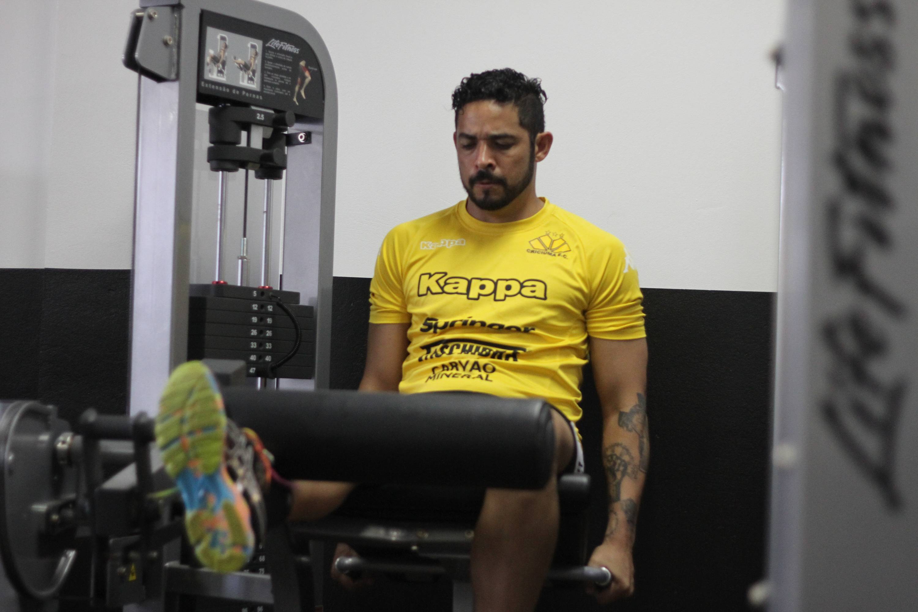 Legenda: Atacante Silvinho durante trabalho na academia do estádio Heriberto Hülse na tarde desta quinta-feira (12/03)