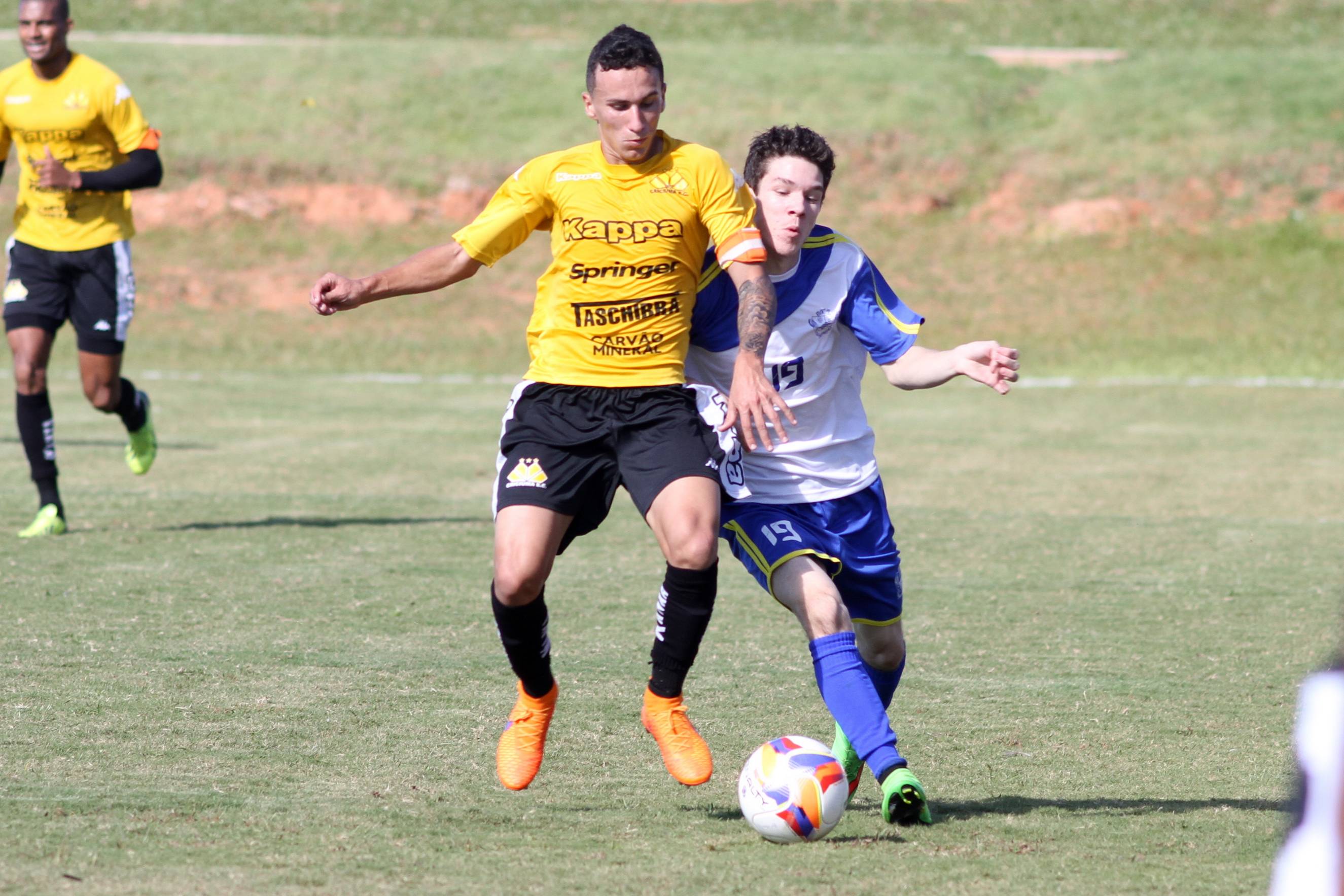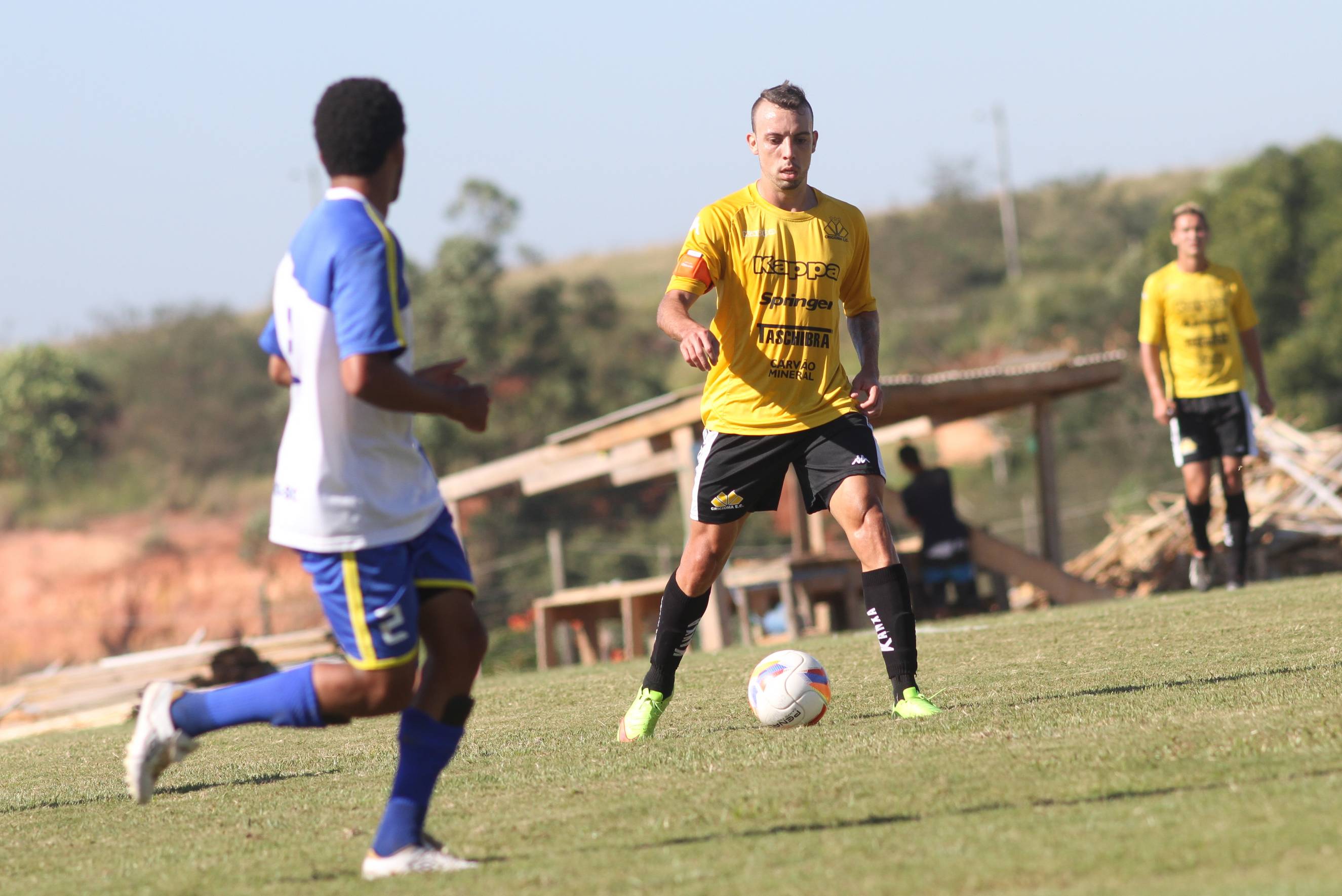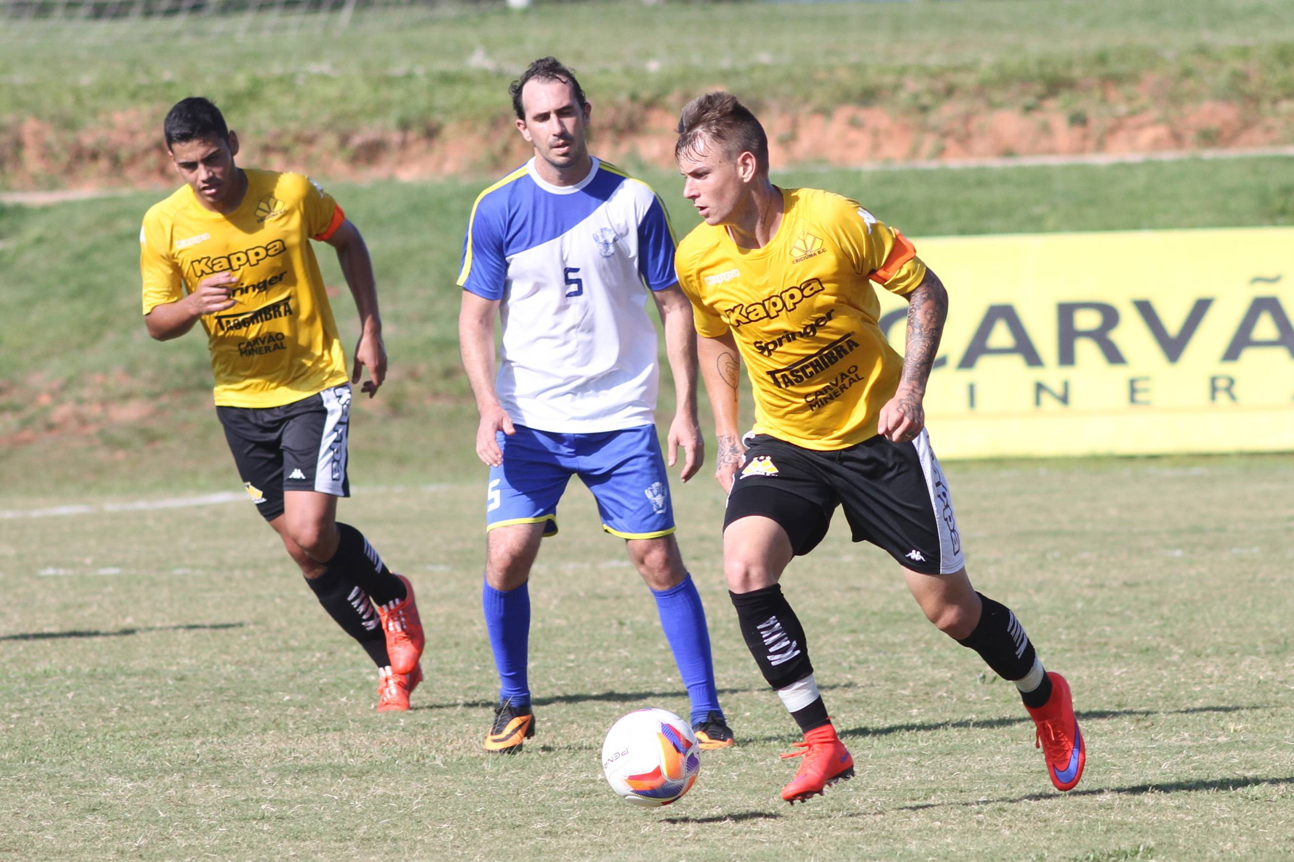Legenda: Moacir Júnior em lance durante o jogo treino entre Criciúma e combinado de Tubarão (SC) no Centro de Treinamento, no bairro Cristo Redentor