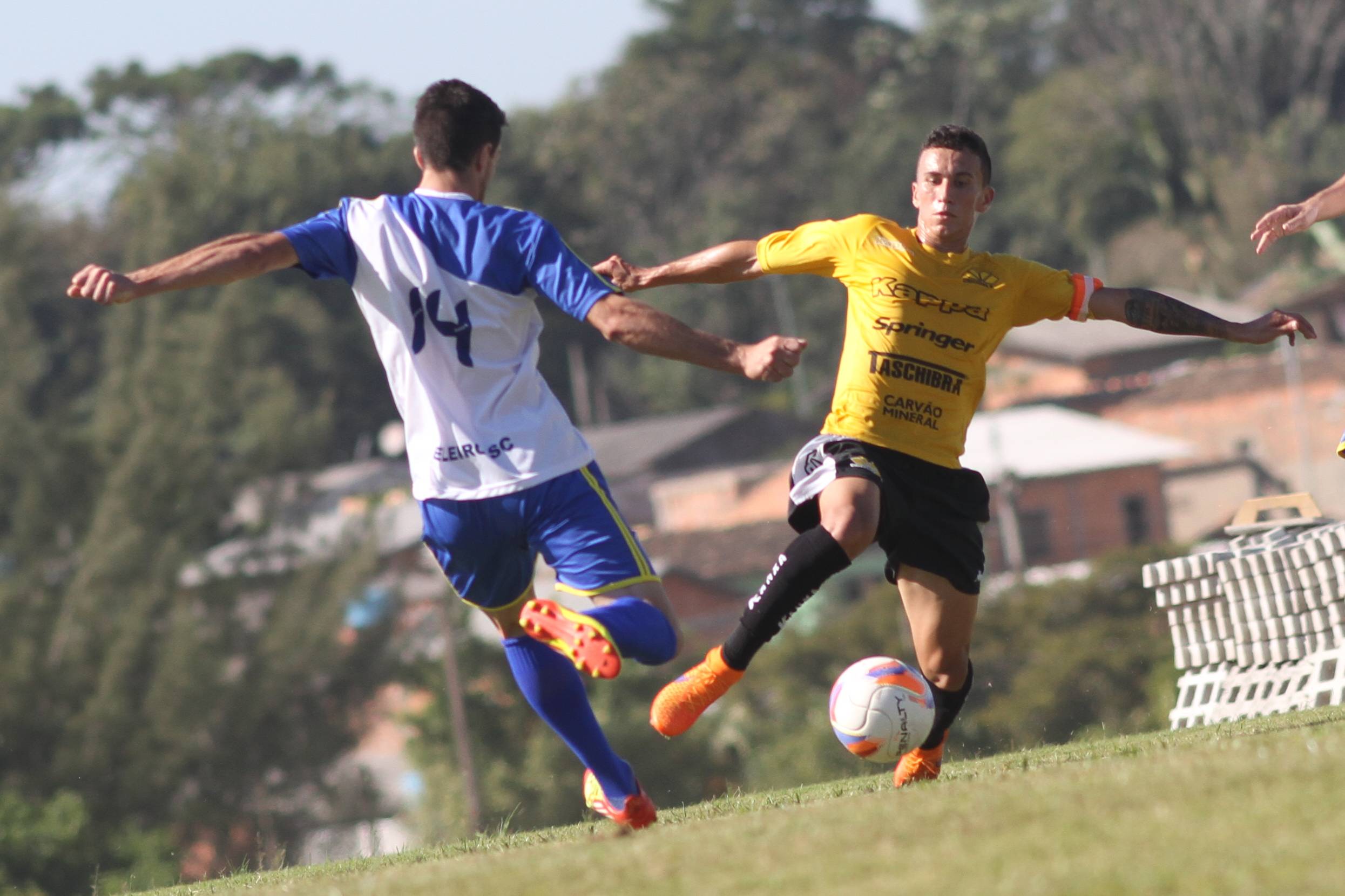 Legenda: Maicon Silva em lance durante o jogo treino entre Criciúma e combinado de Tubarão (SC) no Centro de Treinamento, no bairro Cristo Redentor