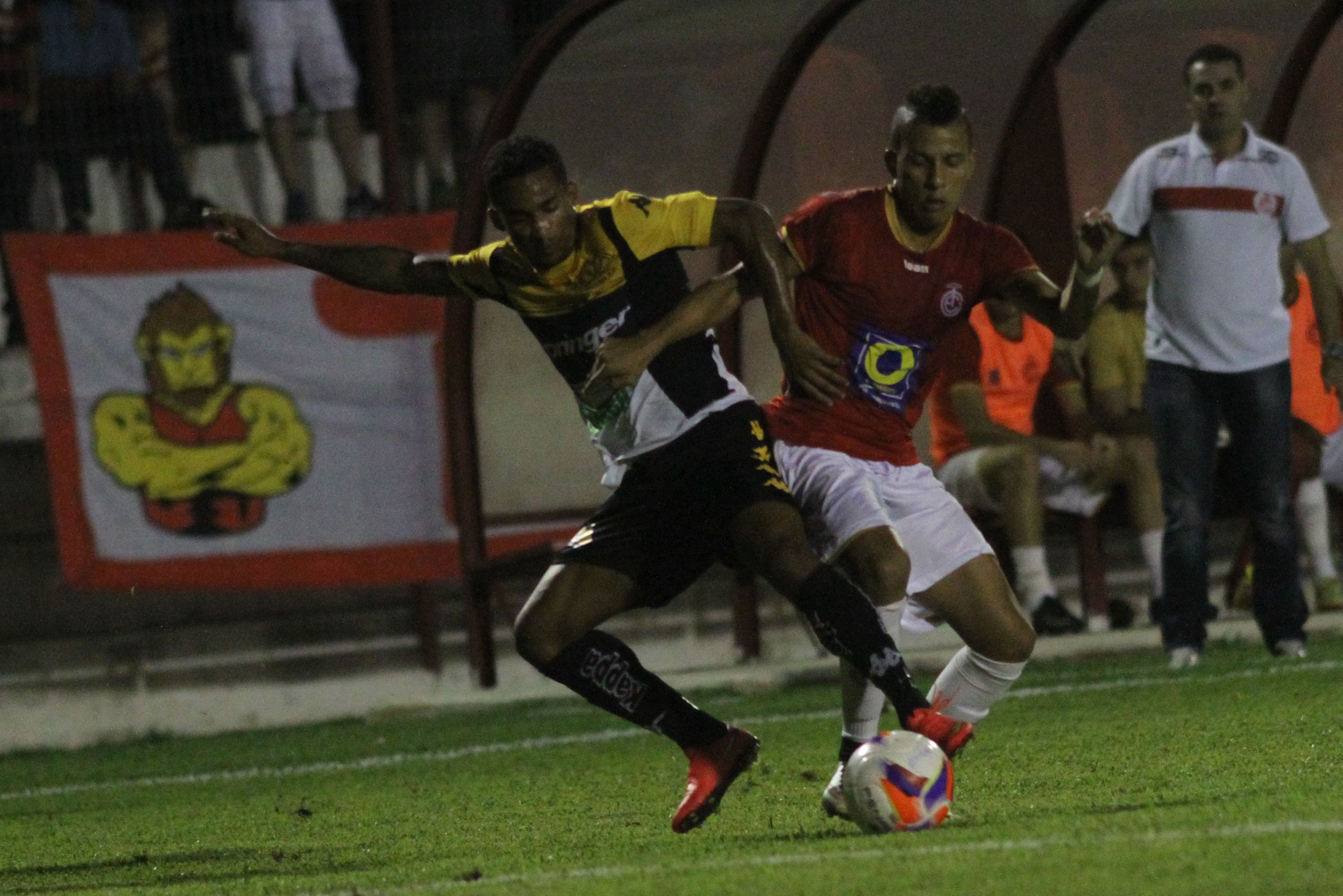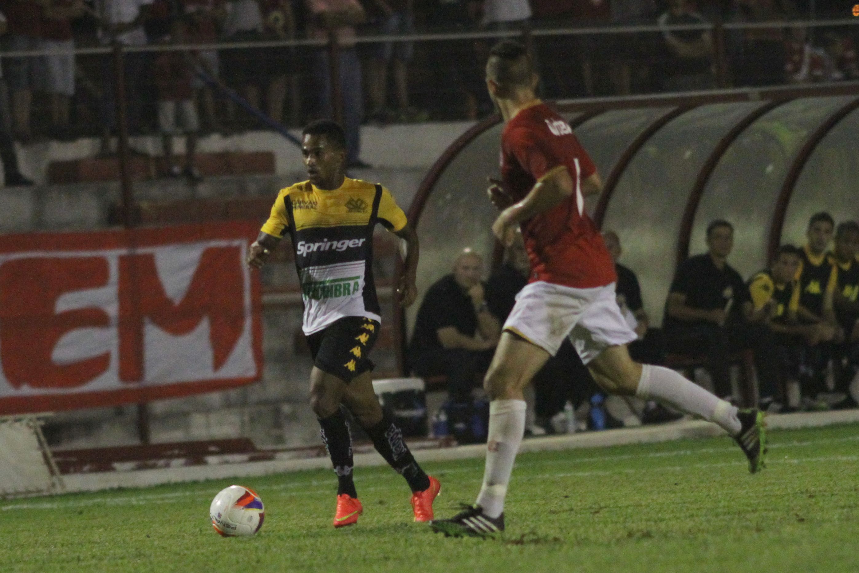 Legenda: Maicon Silva em lance durante o jogo entre Internacional (SC) e Criciúma na noite desta quarta-feira (25/02), no estádio Vidal Ramos Júnior, em Lages