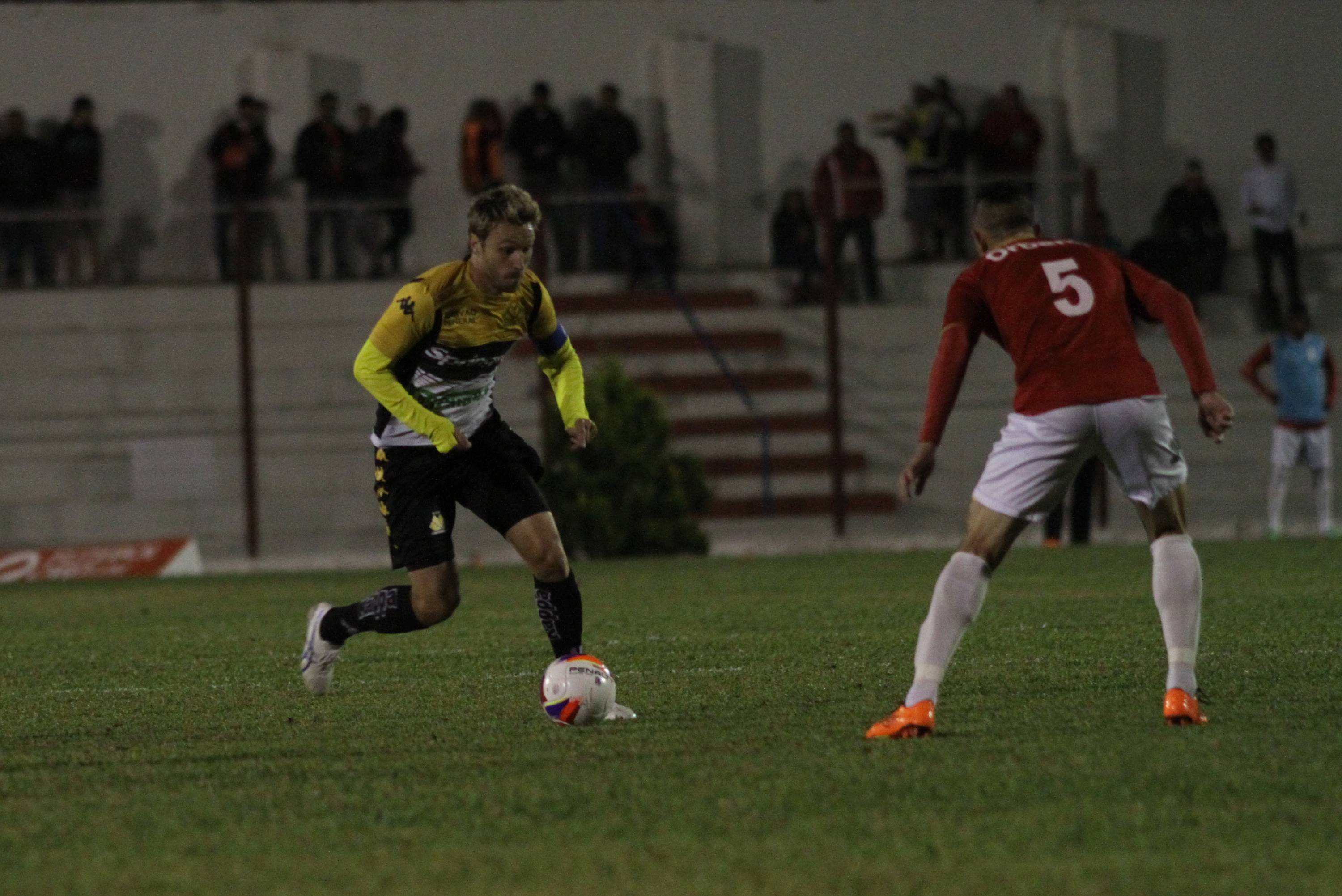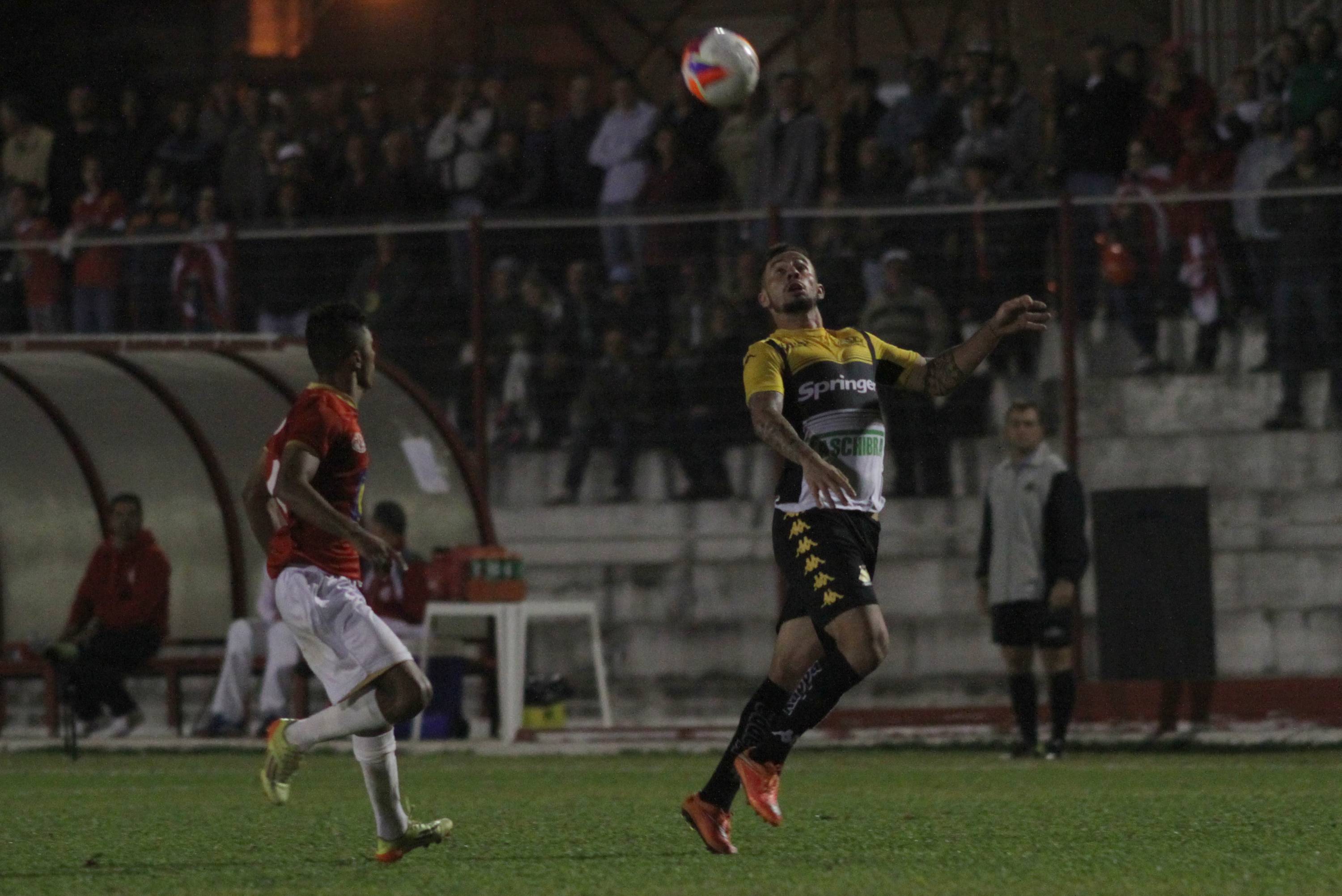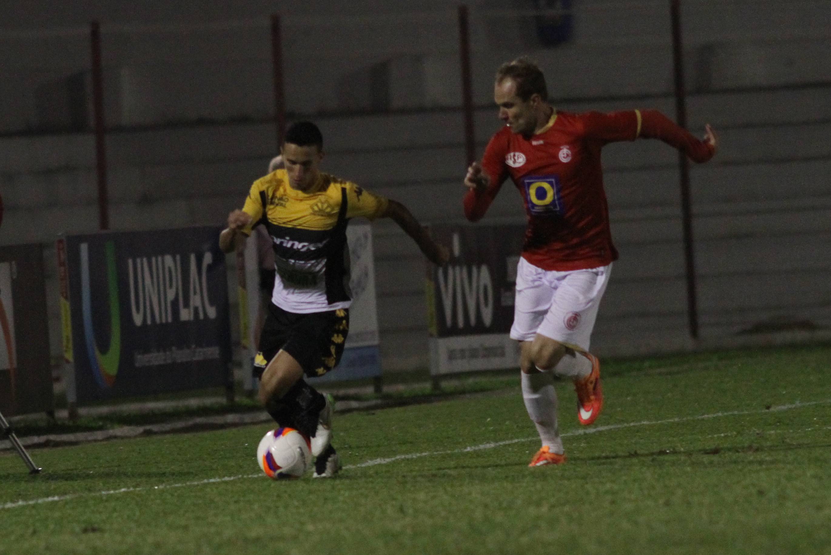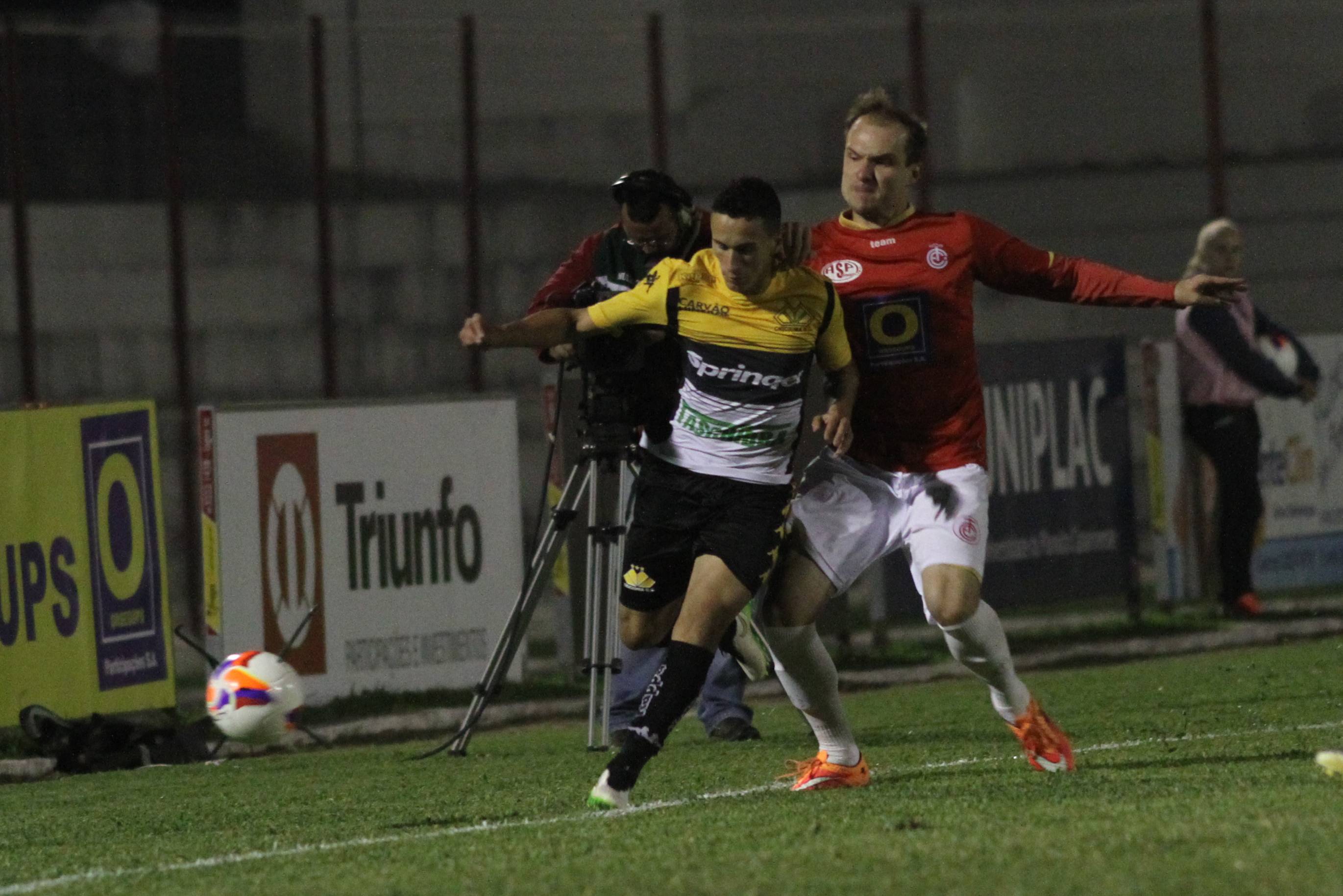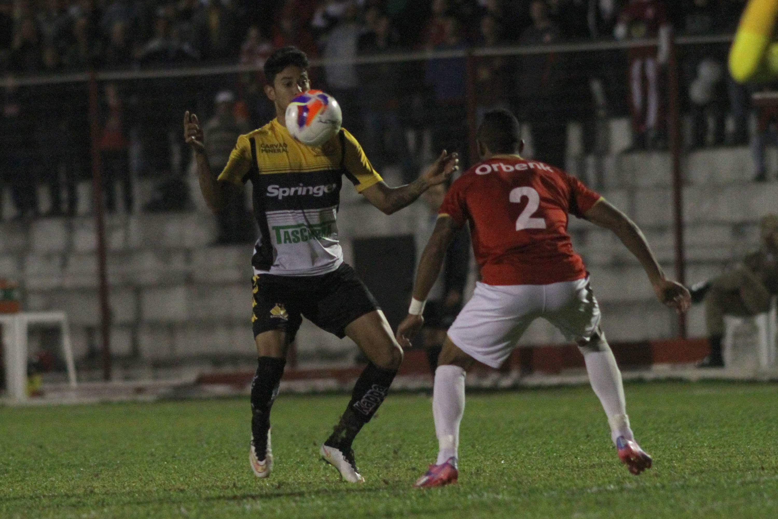 Legenda: em lance durante o jogo entre Internacional (SC) e Criciúma na noite desta quarta-feira (08/04), no estádio Vidal Ramos Júnior, em Lages