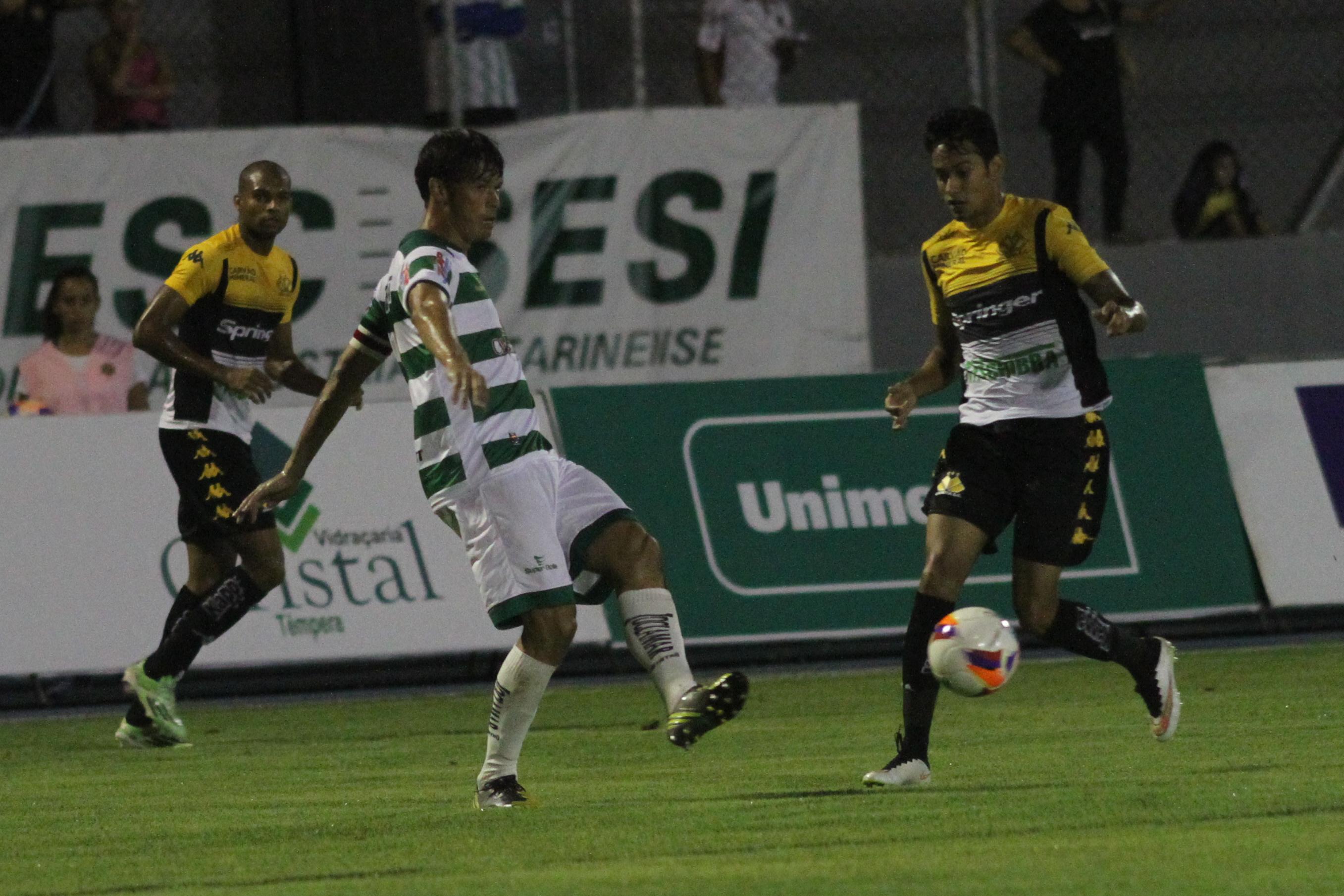 Os criciumenses quase abriram o placar aos 36. Cleber Santana cruzou para Bruno Lopes. O jogador tocou com o pé para o gol, mas a bola bateu no travessão e em cima da linha. Na sequência Alexandre Carvalho colocou a bola para escanteio.