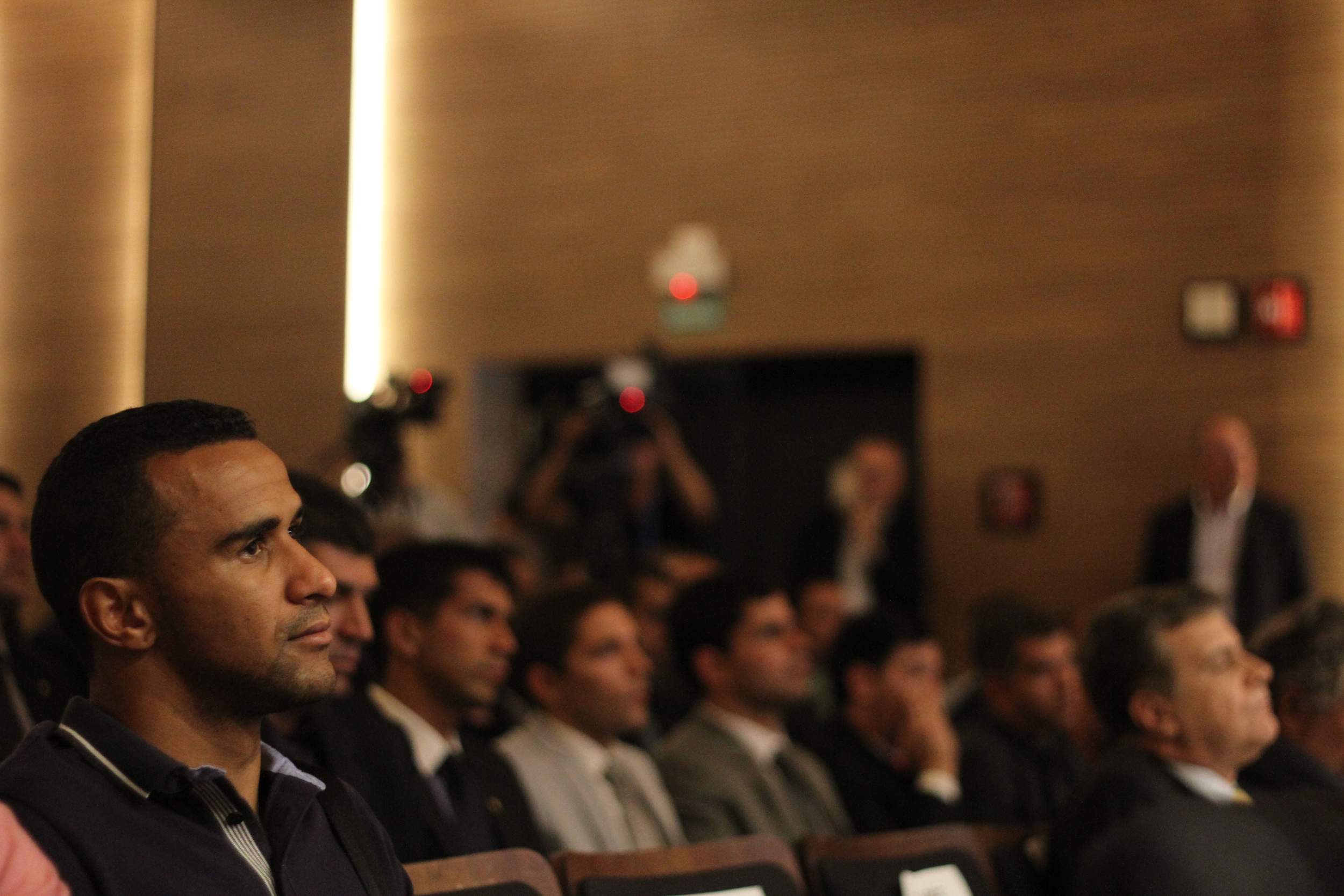 Legenda: Volante Serginho, do Criciúma, durante evento realizado na tarde desta quinta-feira (02/10) na sede da CBF, no Rio de Janeiro (RJ)