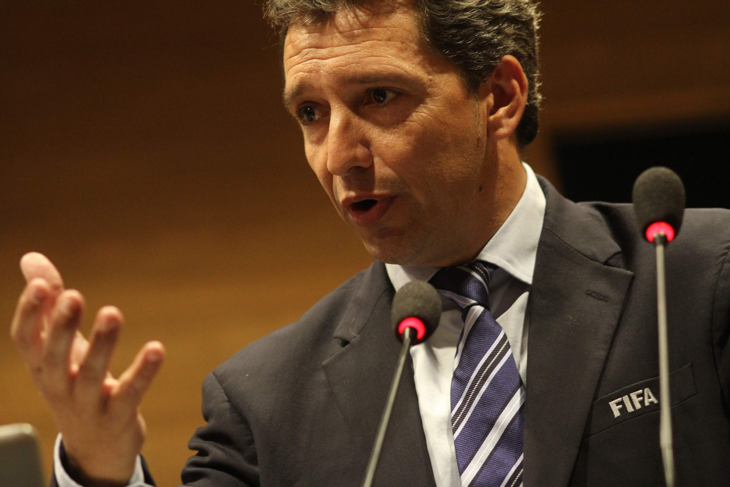 Legenda: Jorge Larrionda durante evento realizado na tarde desta quinta-feira (02/10) na sede da CBF, no Rio de Janeiro (RJ).