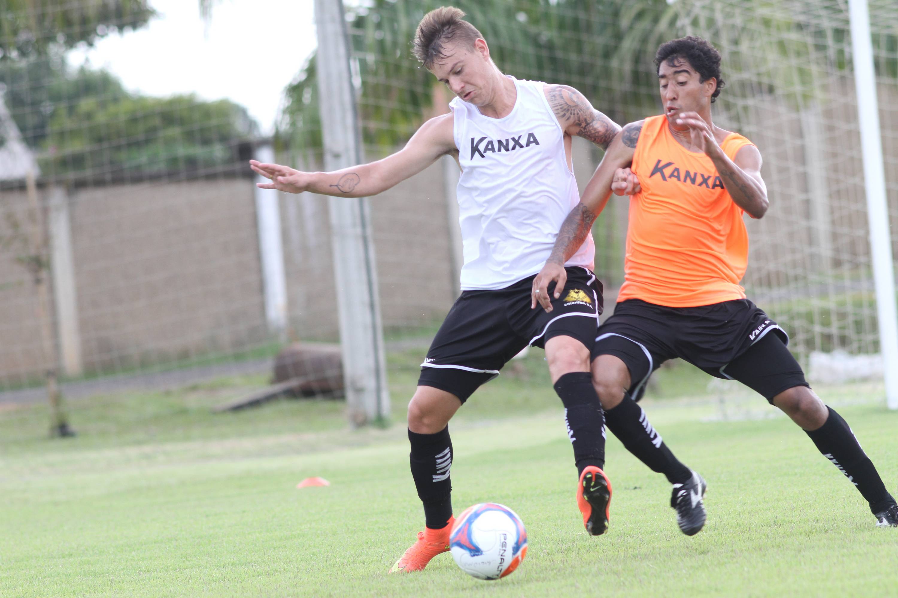 Legenda: Cleber Santana e Vitor Michels durante treino do Criciúma na tarde deste domingo (11/01) no Centro de Treinamento, no bairro Cristo Redentor