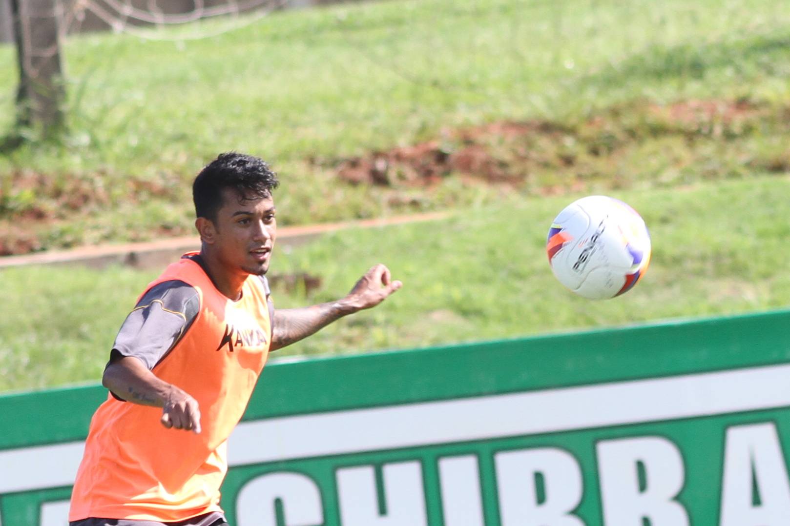 Legenda: Volante Barreto durante treino do Criciúma na tarde desta segunda-feira (02/02) no Centro de Treinamento, no bairro Cristo Redentor