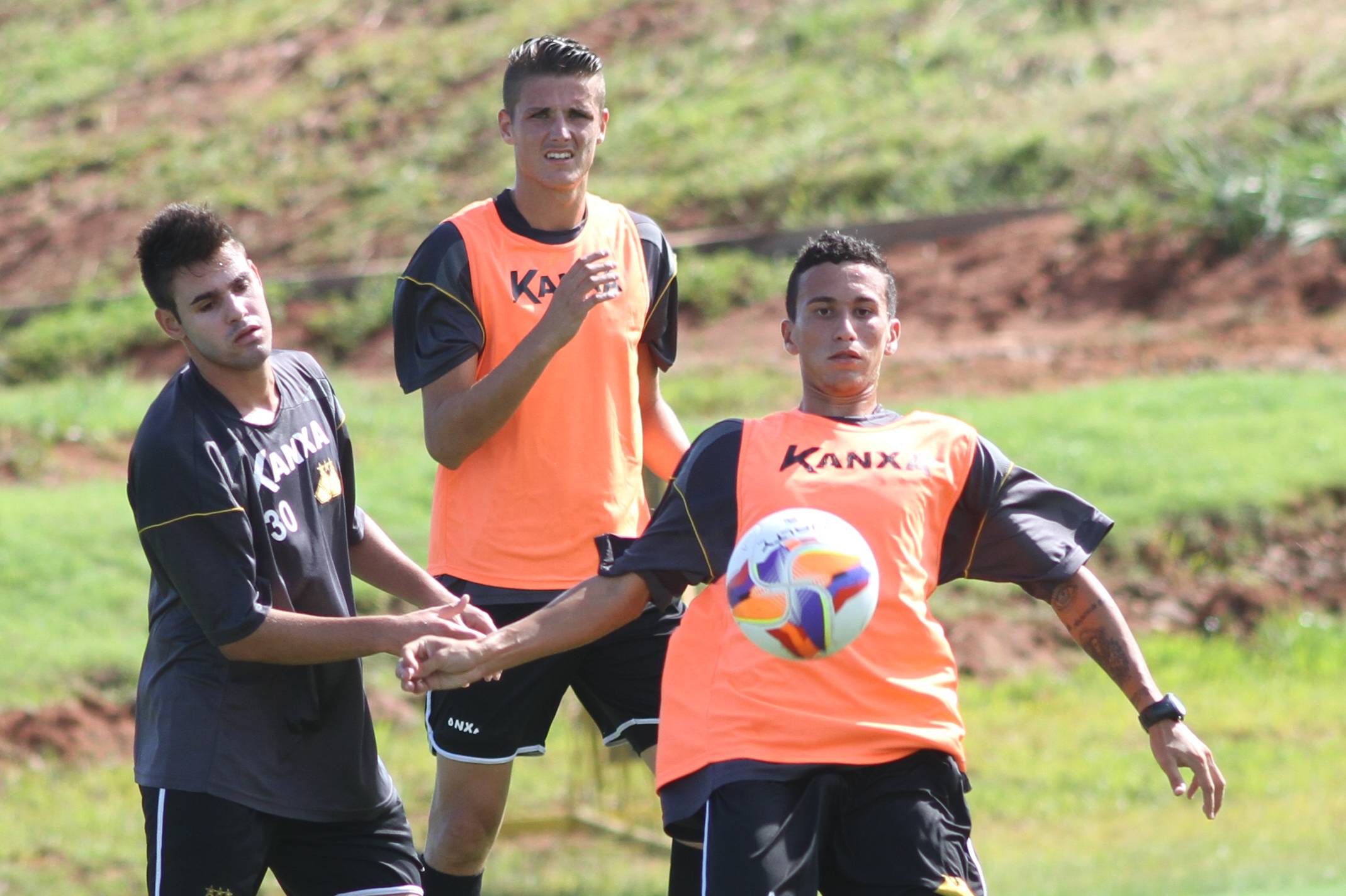 Legenda: Caleb, Iago e Douglas Moreira durante treino do Criciúma na tarde desta segunda-feira (02/02) no Centro de Treinamento, no bairro Cristo Redentor