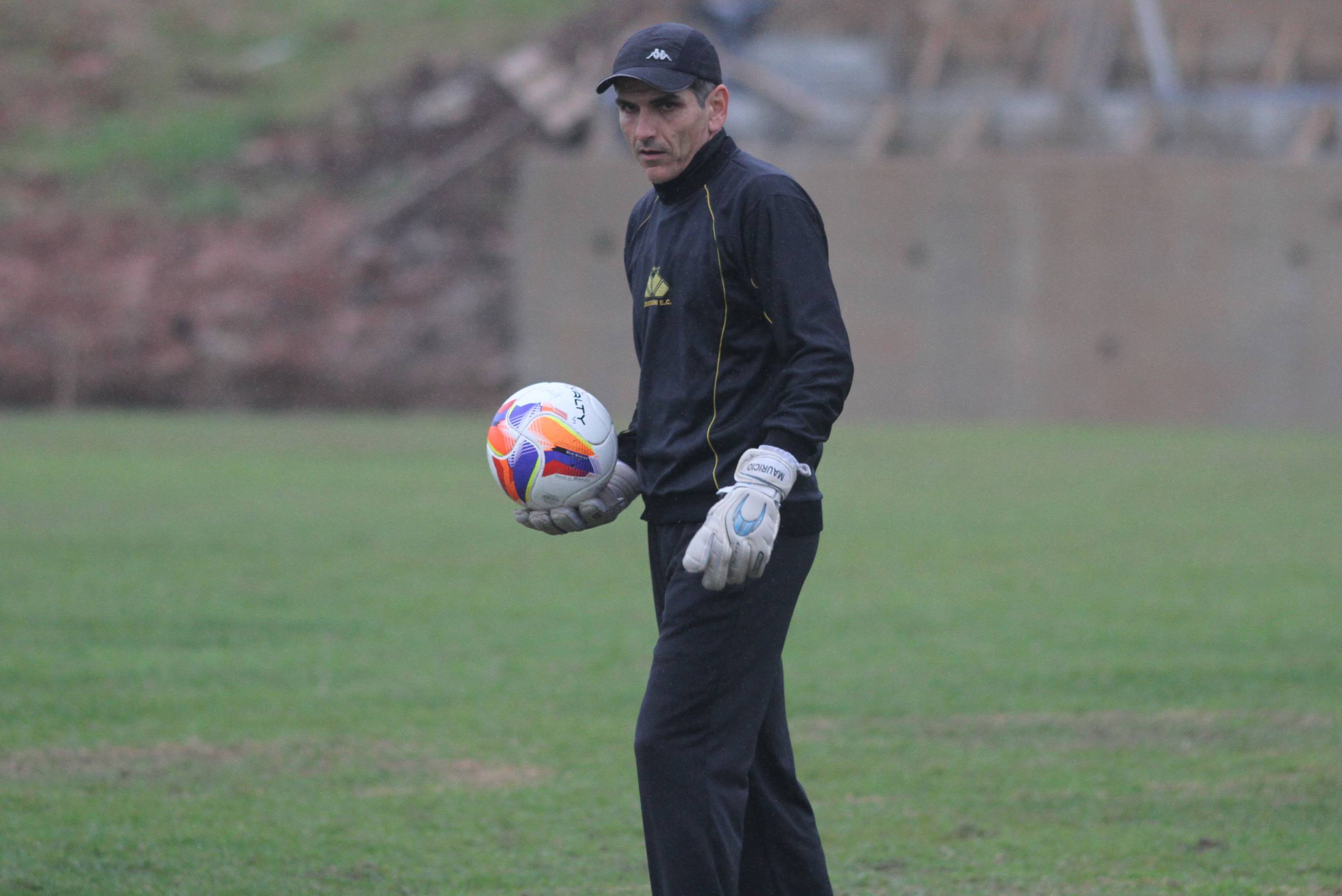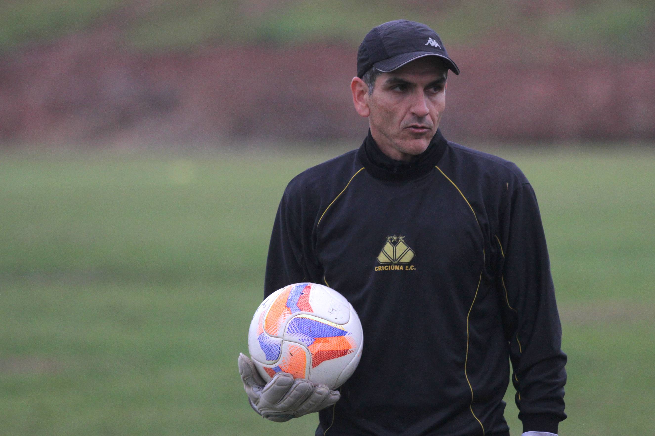 Legenda: Preparador de goleiros Mauricio Dacoregio durante treino do Criciúma na tarde desta quinta-feira (23/07) no Centro de Treinamento, no bairro Cristo Redentor