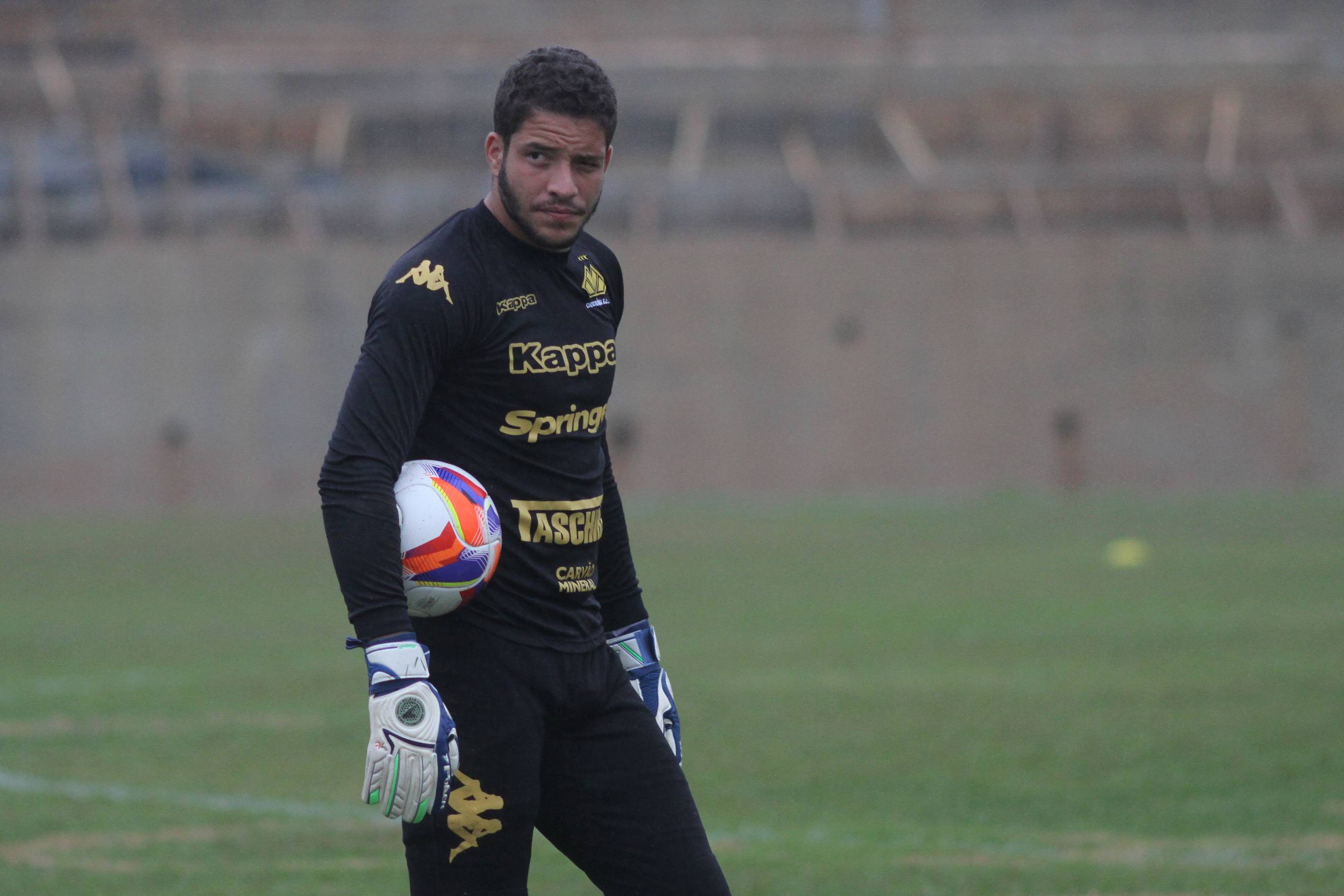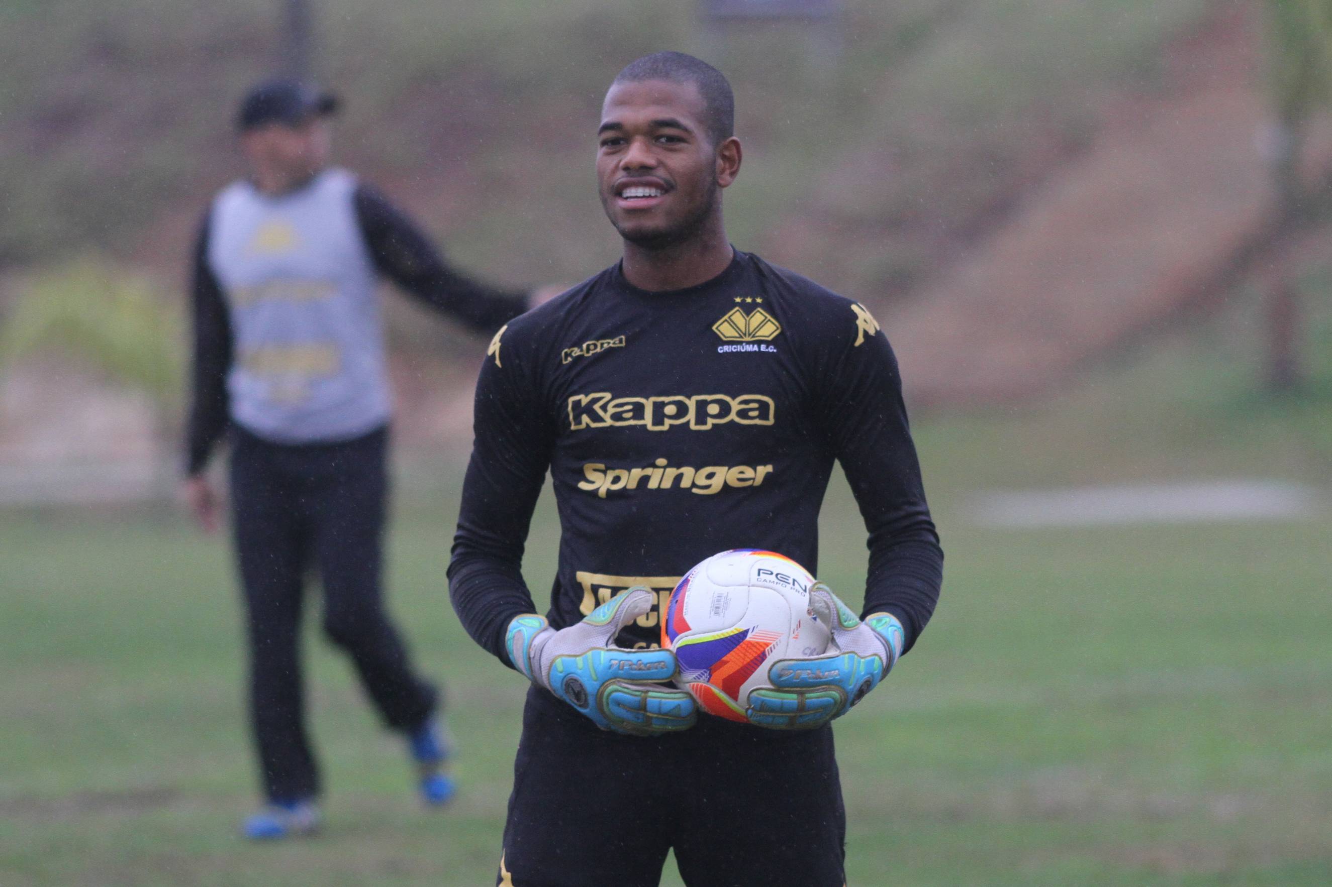 Legenda: Goleiro Bryan durante treino do Criciúma na tarde desta quinta-feira (23/07) no Centro de Treinamento, no bairro Cristo Redentor