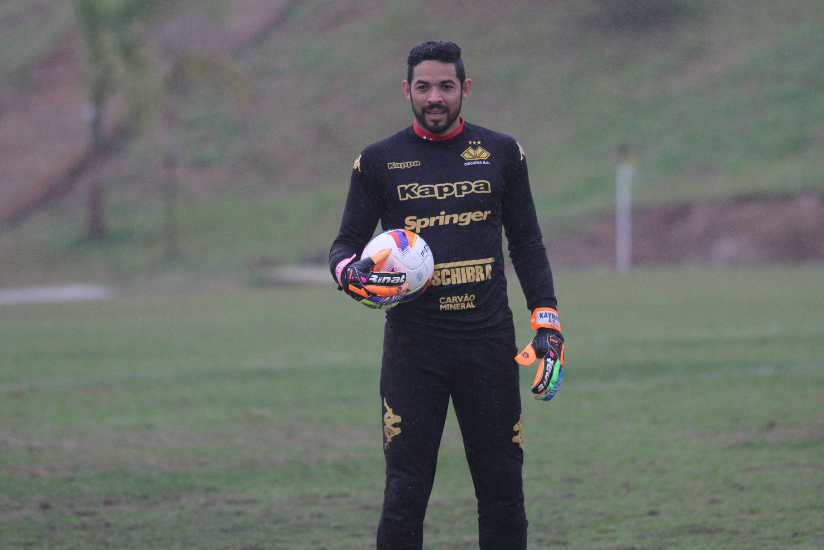 Legenda: Goleiro Edson durante treino do Criciúma na tarde desta quinta-feira (23/07) no Centro de Treinamento, no bairro Cristo Redentor