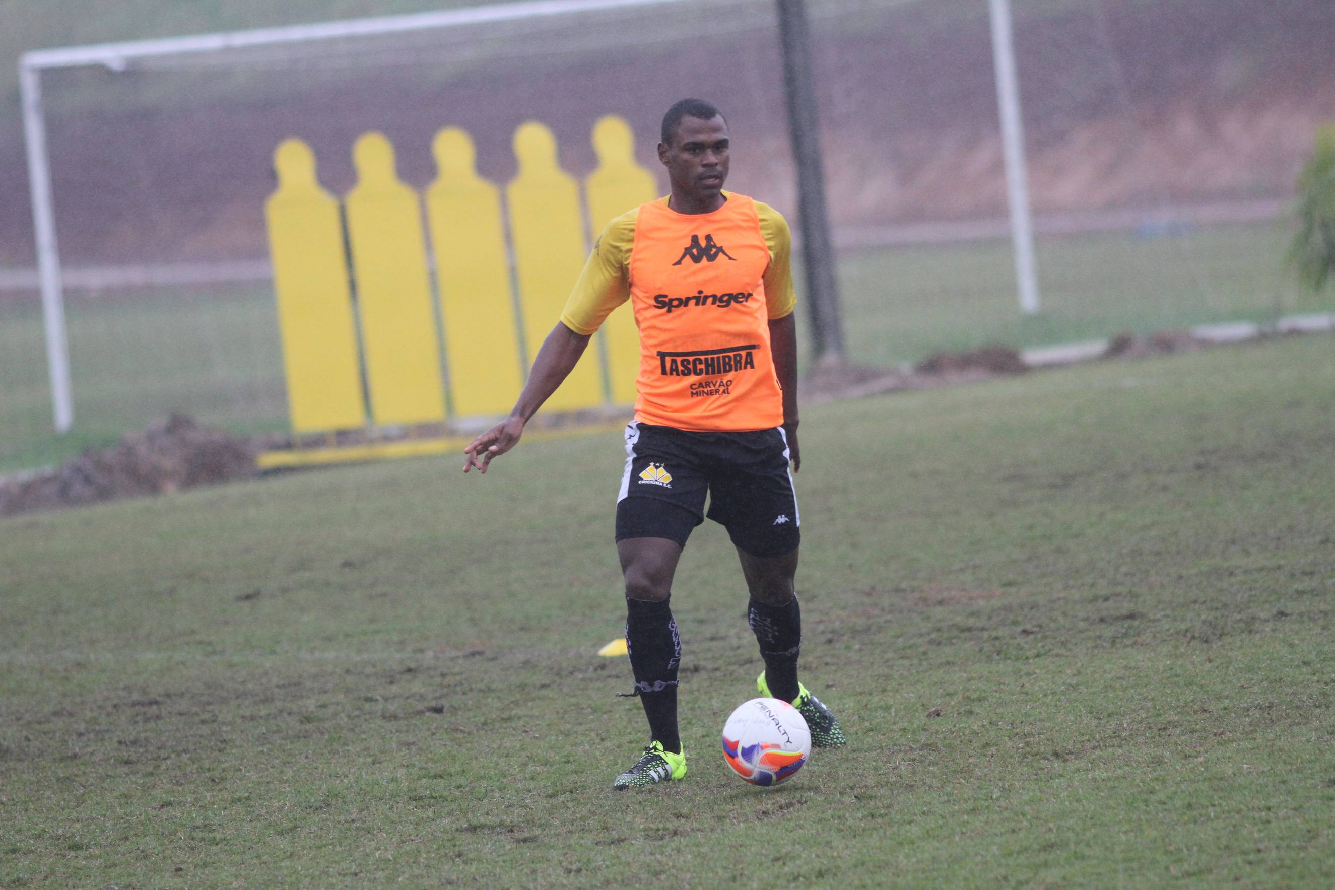 Legenda: Wellington durante treino do Criciúma na tarde desta quinta-feira (23/07) no Centro de Treinamento, no bairro Cristo Redentor