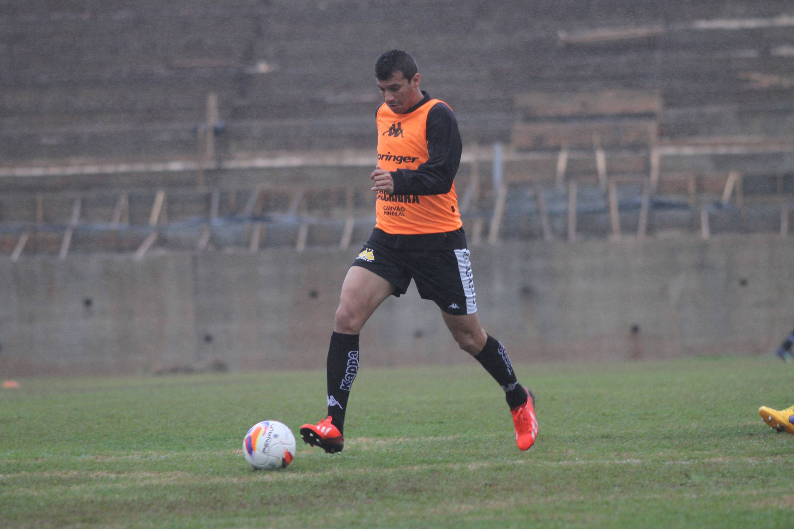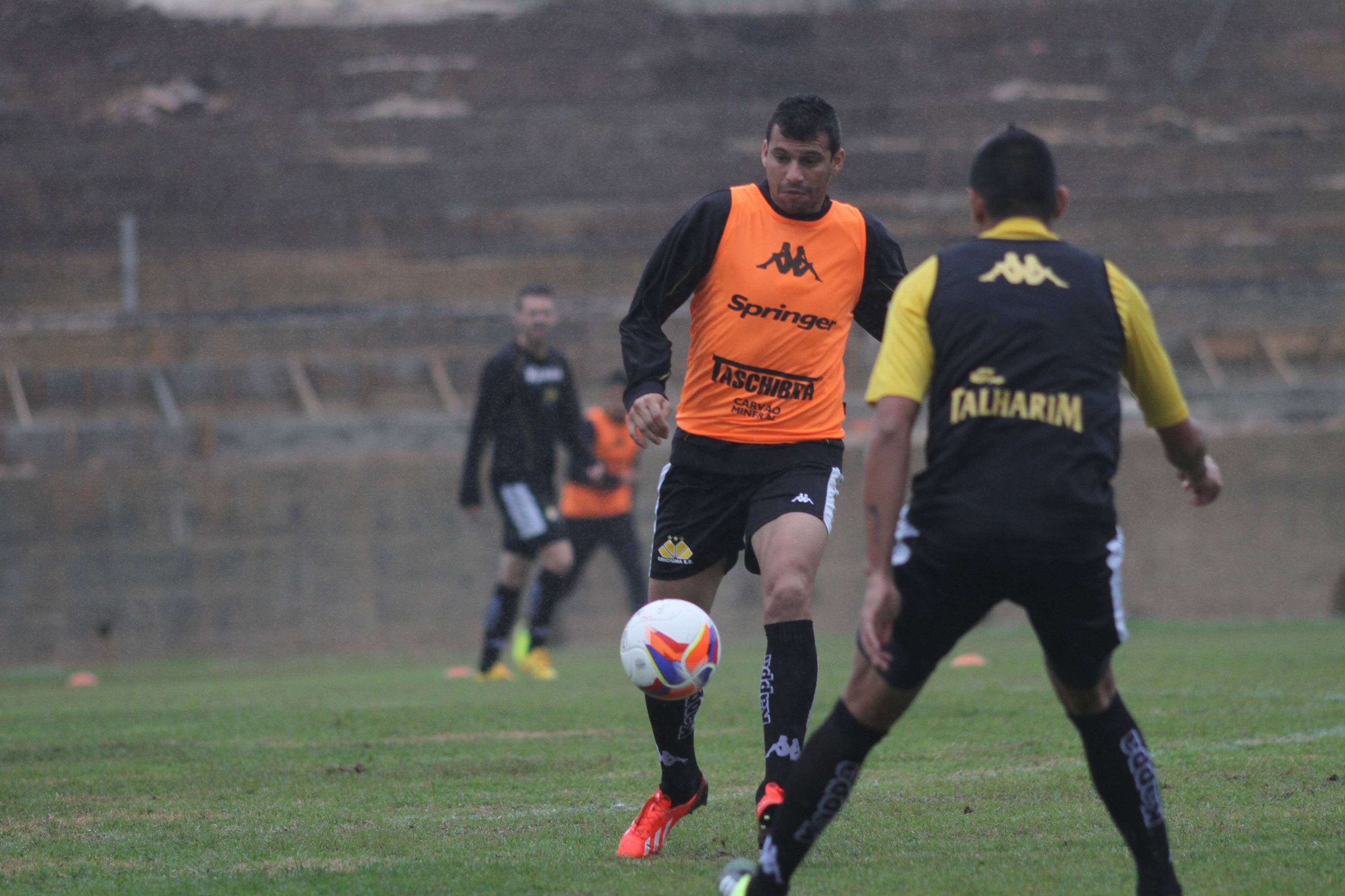 Legenda: Zagueiro Wanderson durante treino do Criciúma na tarde desta quinta-feira (23/07) no Centro de Treinamento, no bairro Cristo Redentor