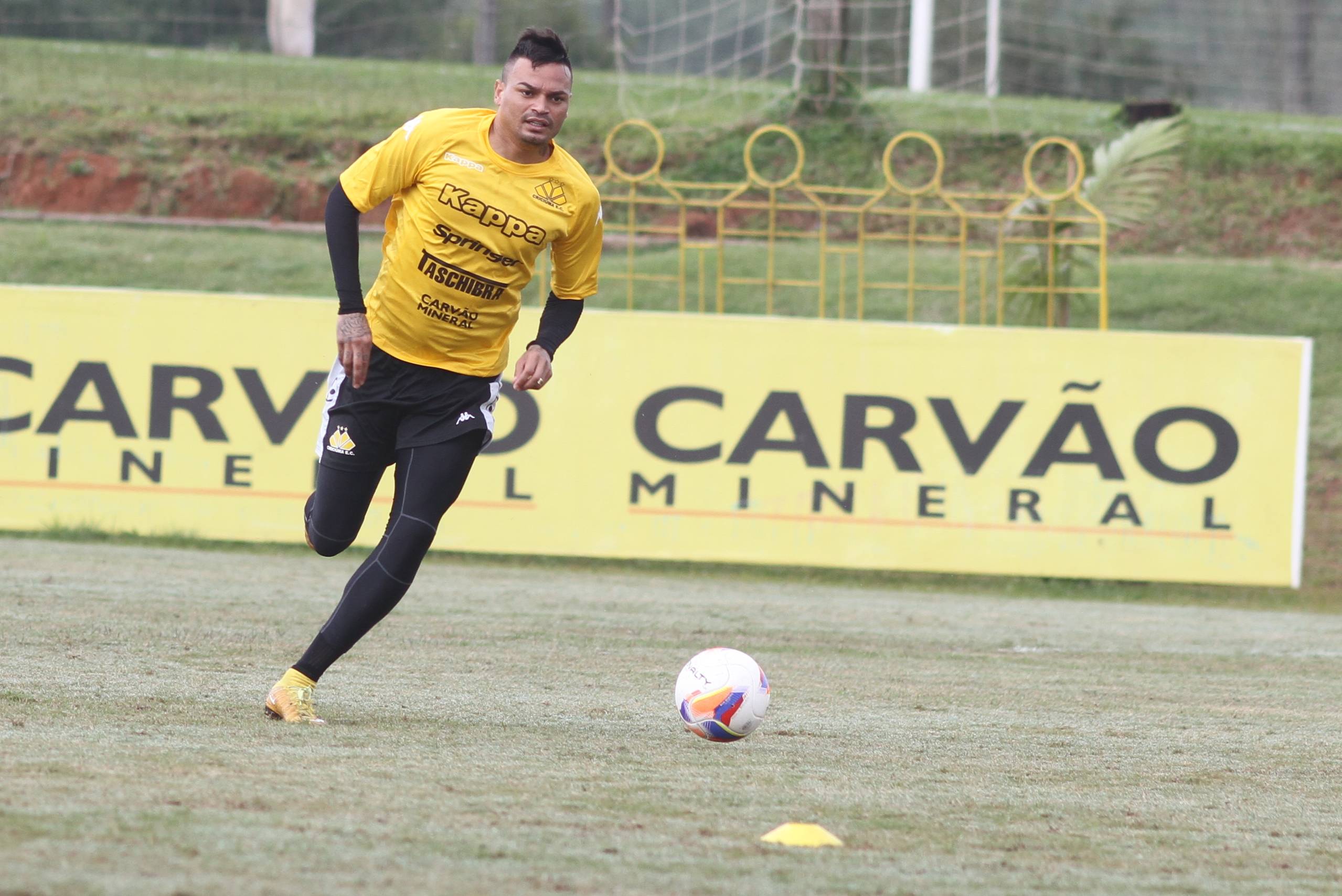 Legenda: Zagueiro Fábio Ferreira durante treino do Criciúma na manhã desta sexta-feira (17/07) no Centro de Treinamento, no bairro Cristo Redentor