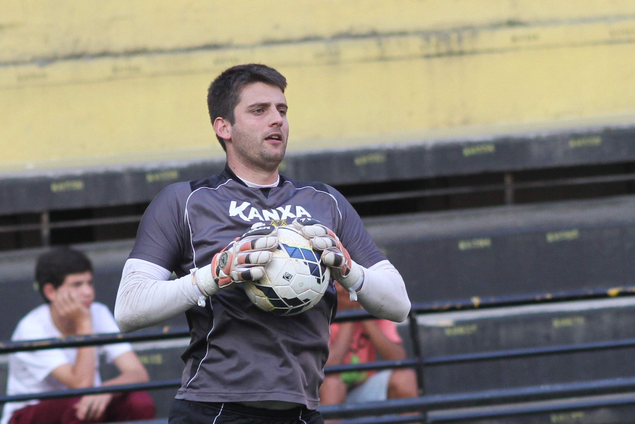 Legenda: Goleiro Galatto durante treino no estádio Heriberto Hülse na tarde desta sexta-feira (22/08)