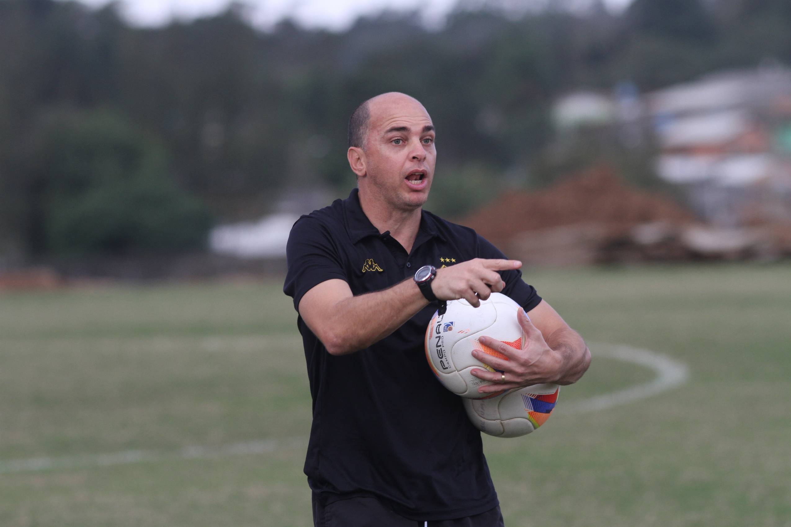 Legenda: Auxiliar técnico Maurinho durante treino do Criciúma na tarde desta segunda-feira (03/08), no Centro de Treinamento, no bairro Cristo Redentor