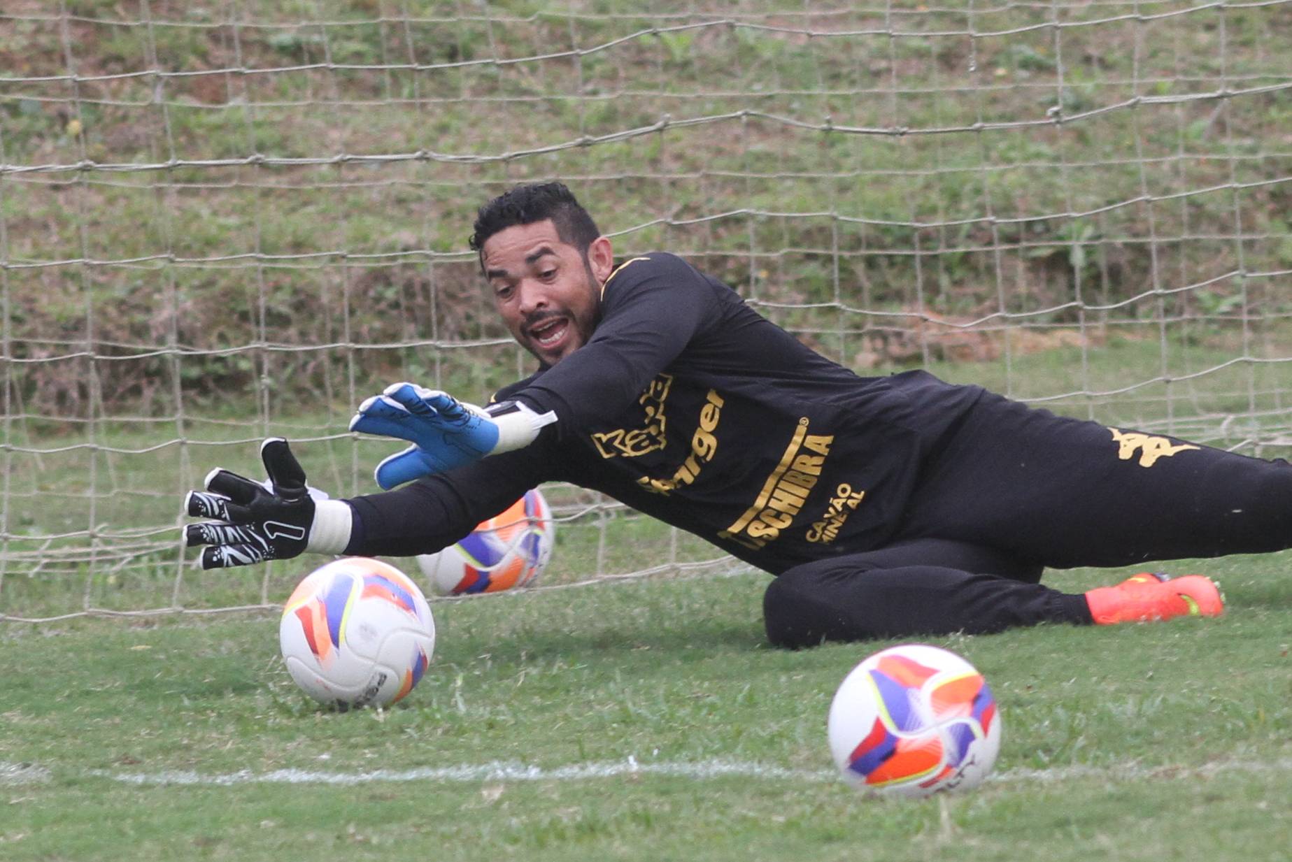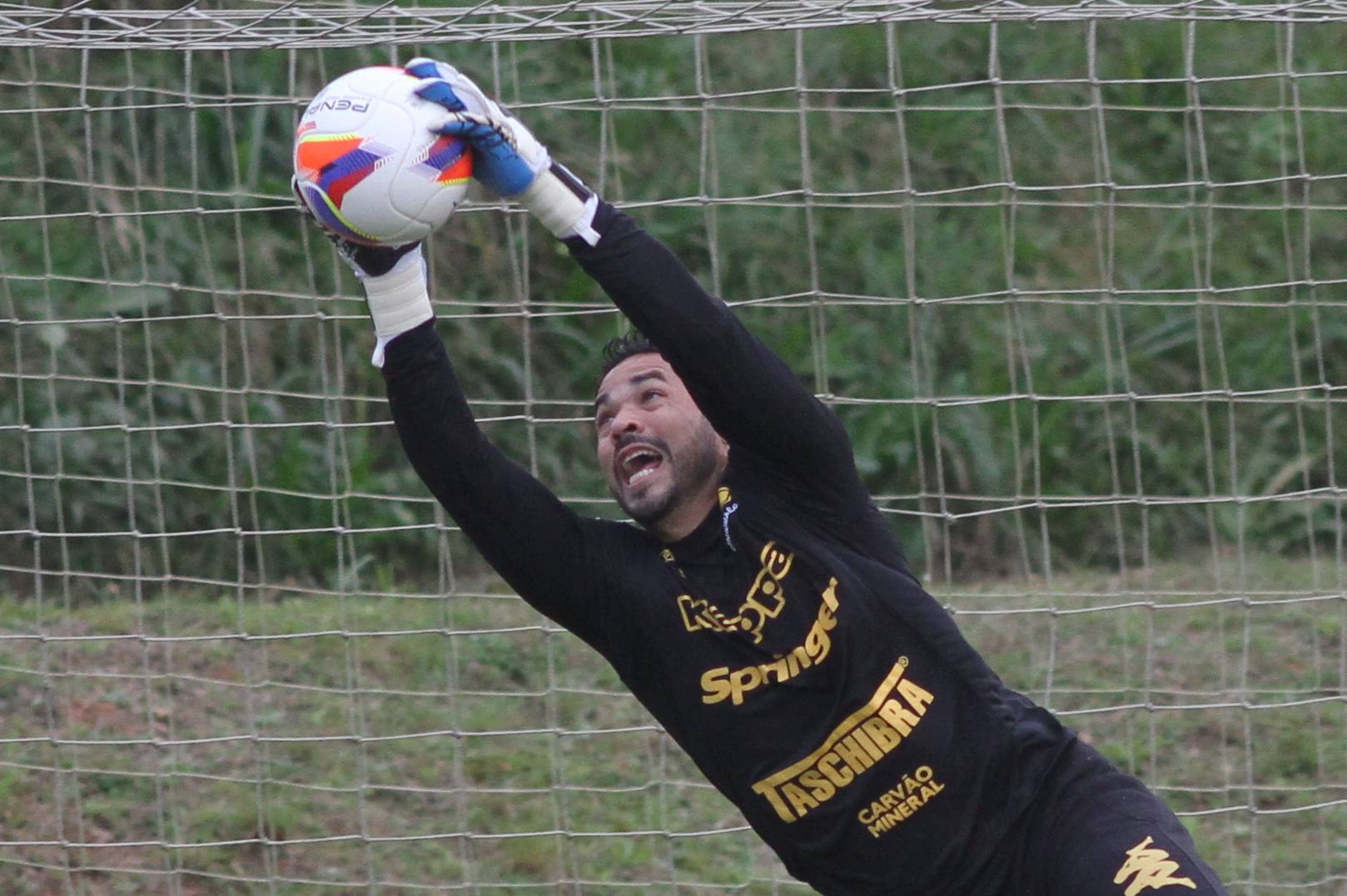 Legenda: Goleiro Luiz durante treino do Criciúma na tarde desta segunda-feira (03/08), no Centro de Treinamento, no bairro Cristo Redentor